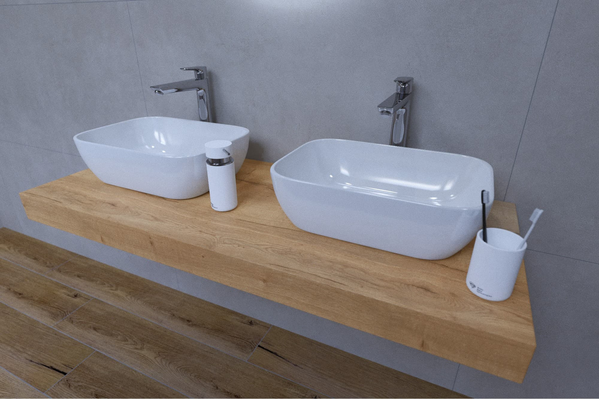L'ensemble de salle de bain à prix réduit se compose de treize produits - robinet 2x, lavabo 2x, plaque sous le lavabo, bouchon 2x, siphon 2x, support 4x