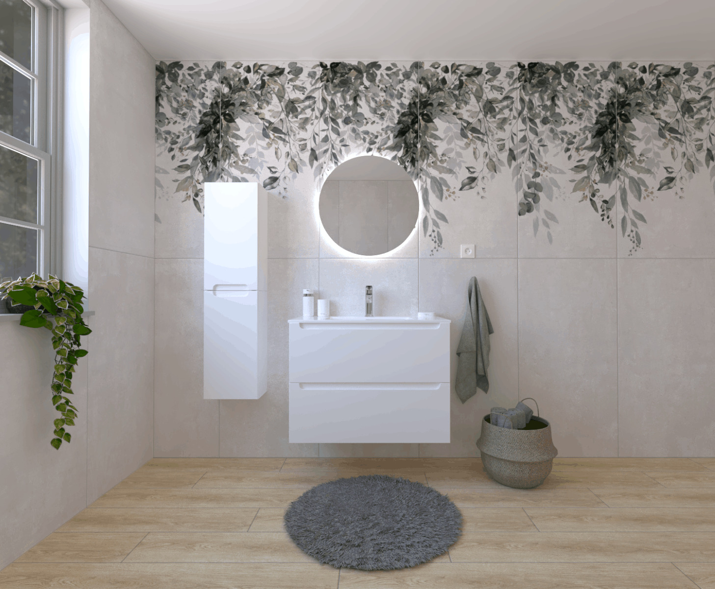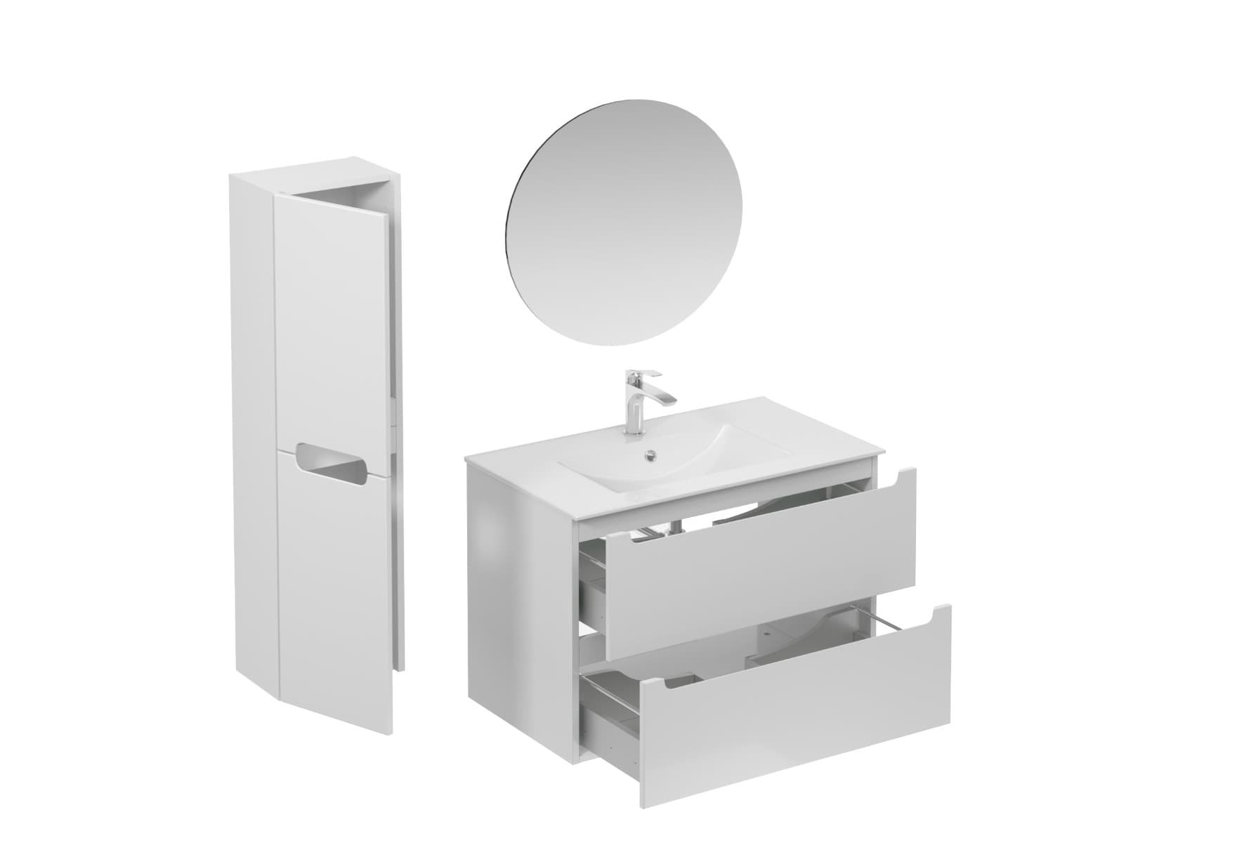 - Meuble de salle de bain Naturel Stilla 80x60x45 cm en décor blanc brillant. La façade et le corps sont recouverts d'un vernis photopolymérisable. Les tiroirs sont équipés du système Soft Close.