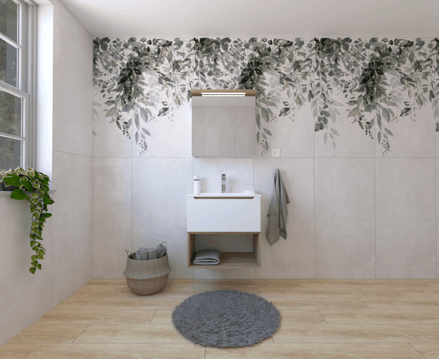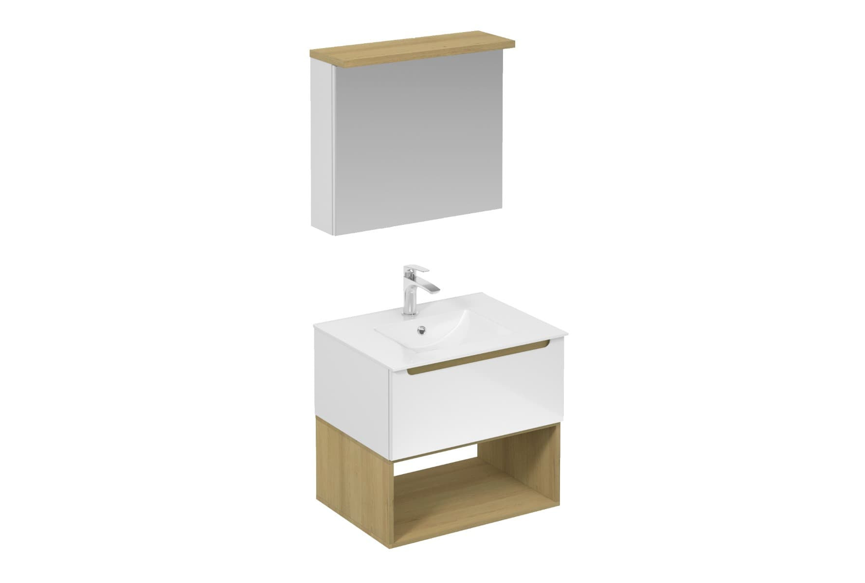 - Armoire à miroir Naturel Stilla + LED 60x60 cm blanc.