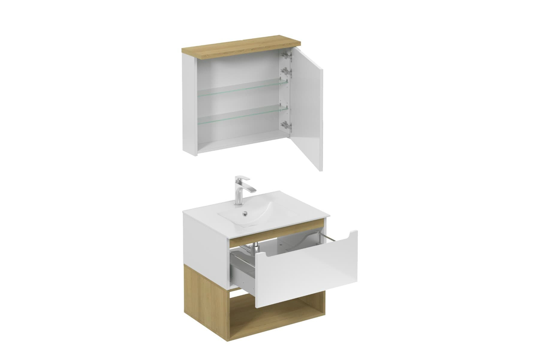 Ensemble de salle de bain mural avec lavabo en céramique blanc avec surface en mélaminé: