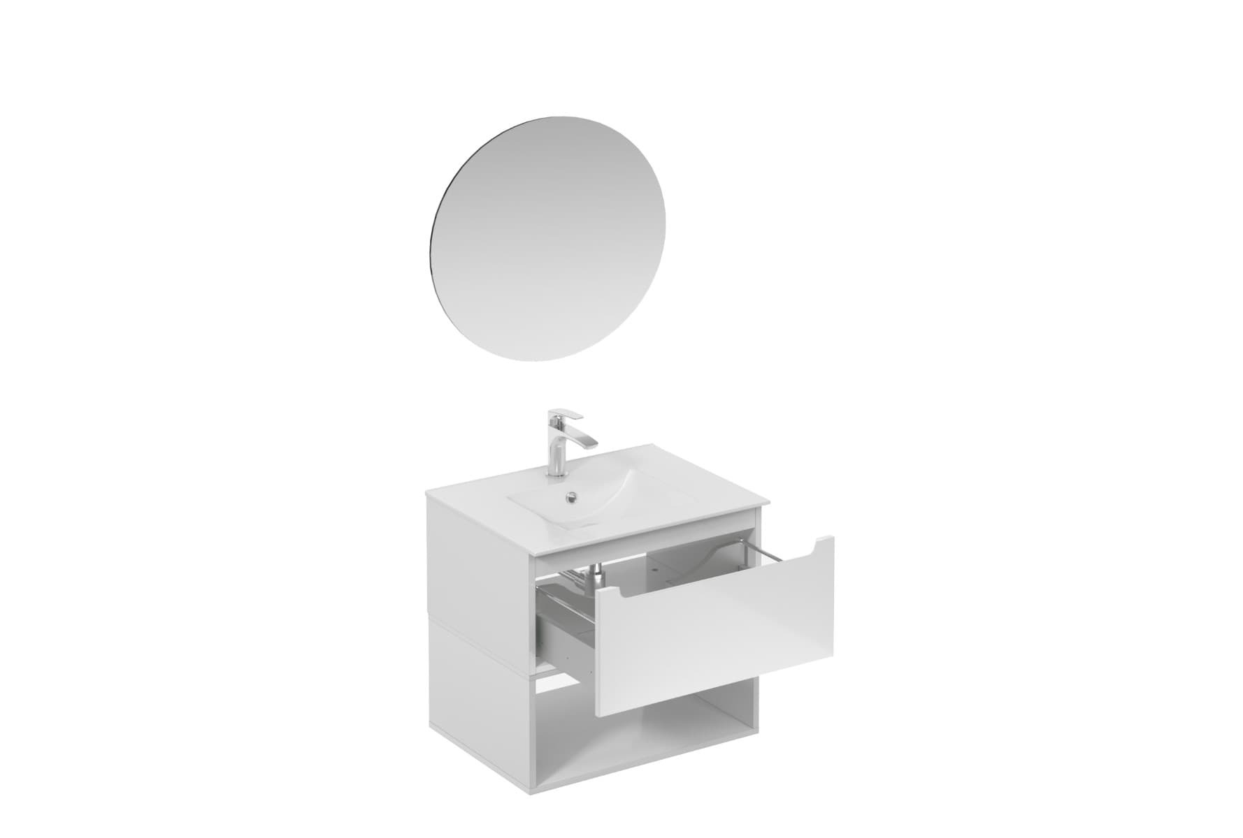Ensemble de salle de bain mural avec lavabo en céramique blanc avec surface en mélaminé :