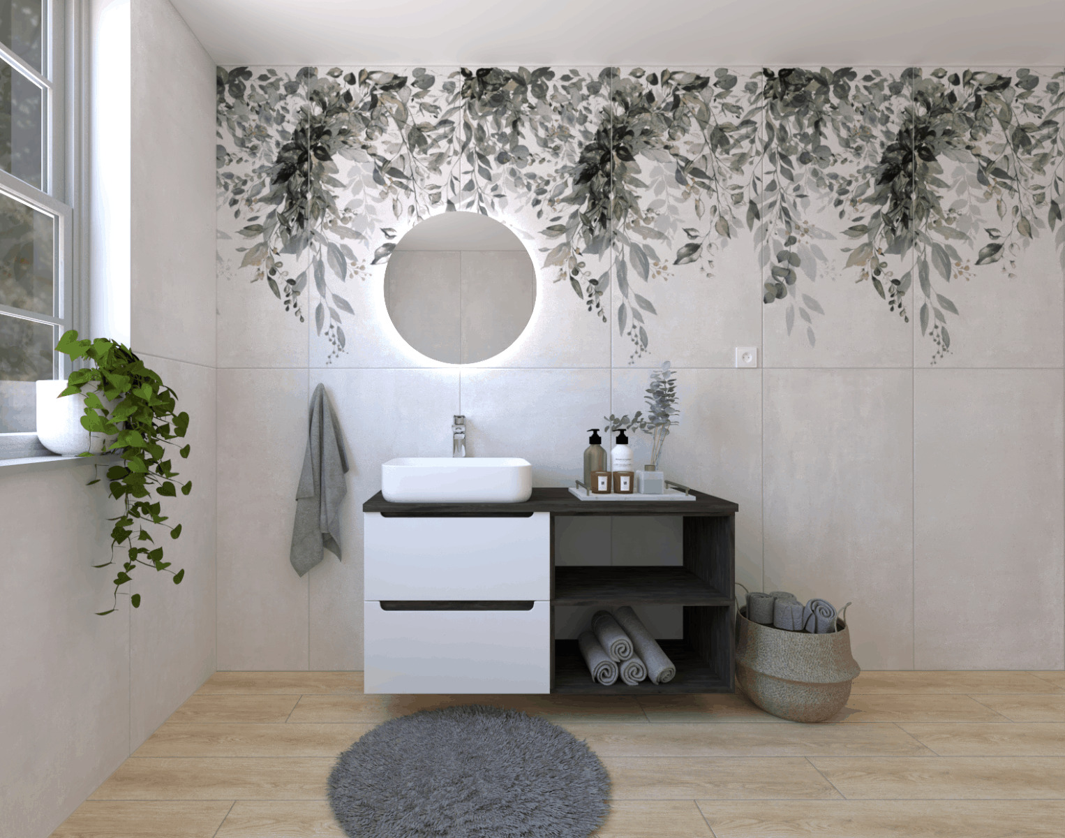 Ensemble de salle de bain mural avec lavabo en céramique blanc avec surface en mélaminé :