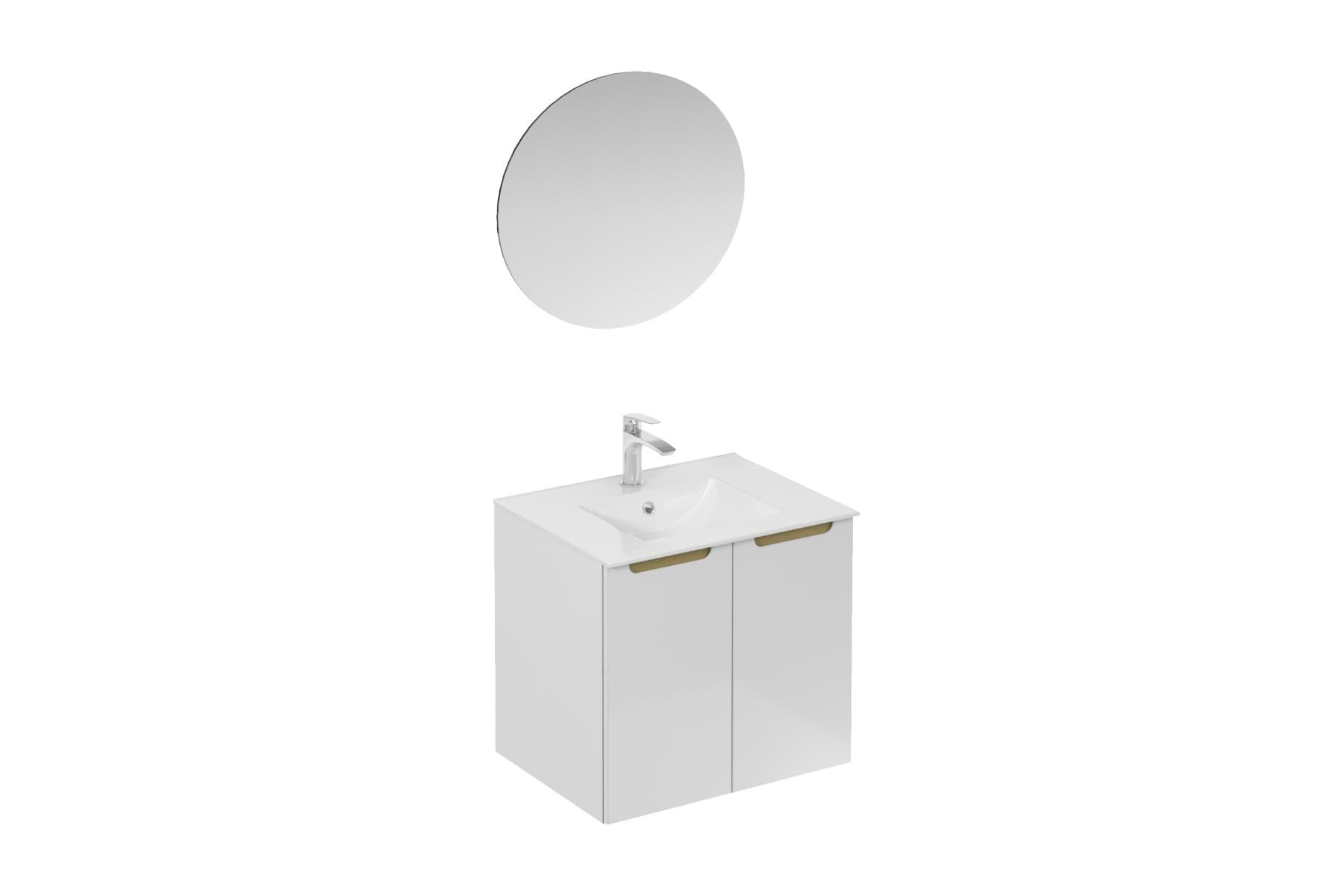 Ensemble de salle de bain mural avec lavabo en céramique blanc avec surface en mélaminé: