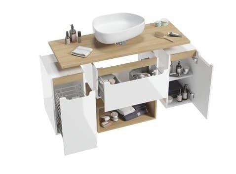 De plus, il fait partie de la collection modulaire STILLA et peut être combiné avec des armoires supplémentaires, des caissons étagères et des plaques de recouvrement de votre choix. Cette solution vous permet d'obtenir plus d'espace de rangement pour tous les accessoires de salle de bain.