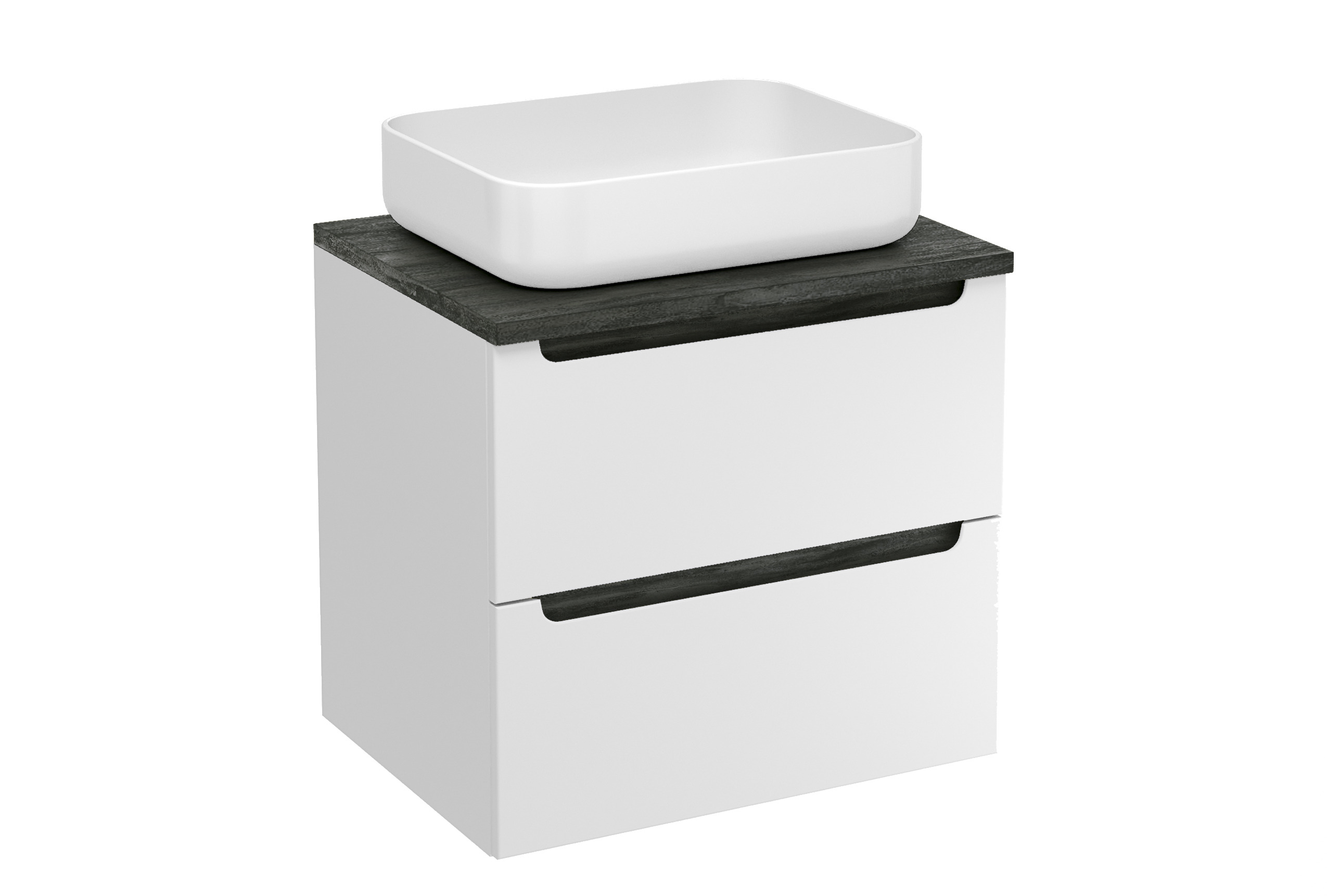 Meuble de salle de bain suspendu Stilla avec deux tiroirs de dimensions 60x60x45 cm avec plaque de recouvrement. L'armoire fait partie de la collection modulaire STILLA et peut être combinée avec des armoires et des étagères supplémentaires. Cette solution vous permet d'obtenir plus d'espace de rangement pour tous les accessoires de salle de bain.