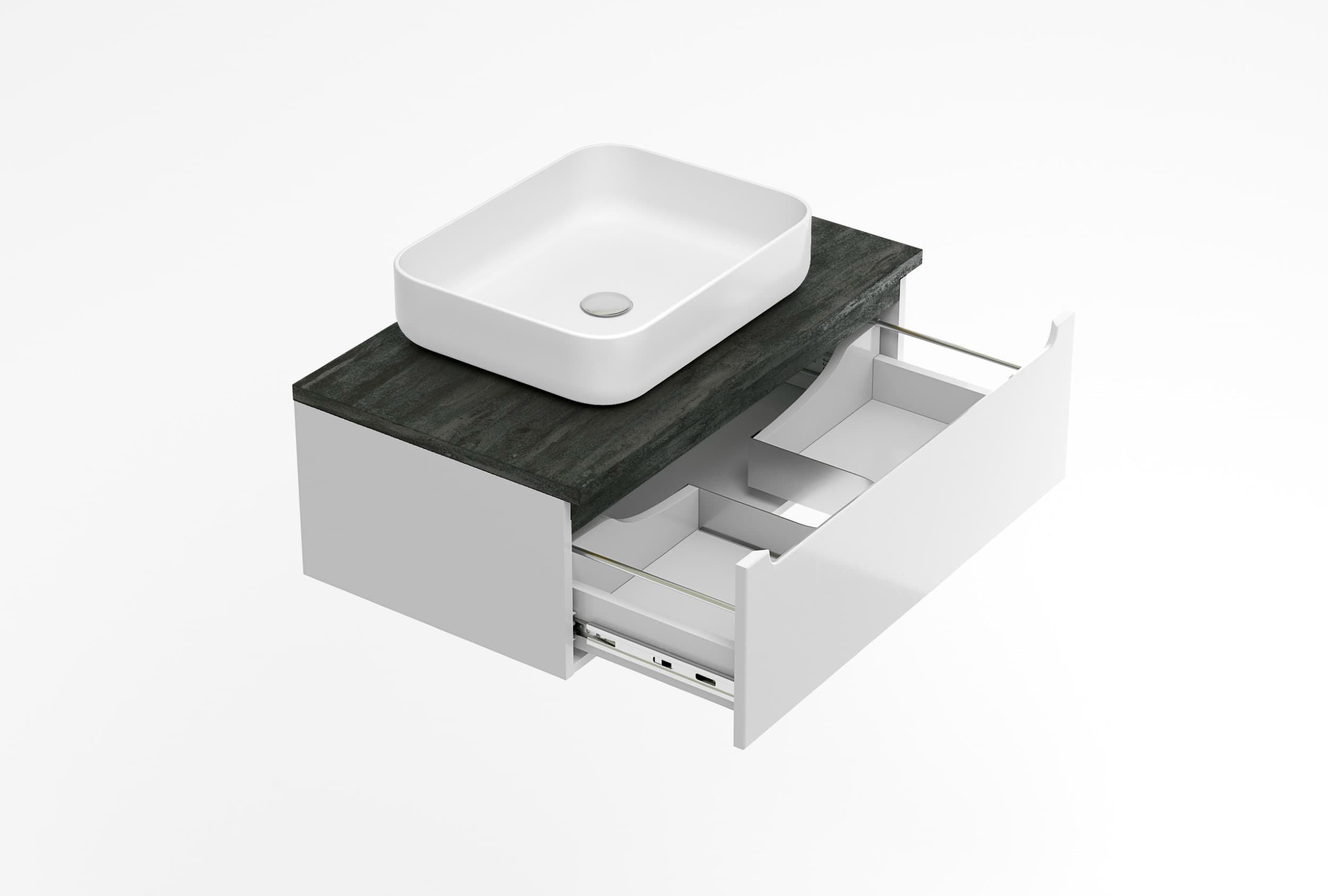 Meuble de salle de bain suspendu Stilla avec un tiroir de 80x30x45 cm avec une plaque de recouvrement de couleur noir béton. L'armoire fait partie de la collection modulaire STILLA et peut être combinée avec des armoires supplémentaires, des boîtes à étagères et des plaques de recouvrement de votre choix. Cette solution vous permet d'obtenir plus d'espace de rangement pour tous les accessoires de salle de bain.