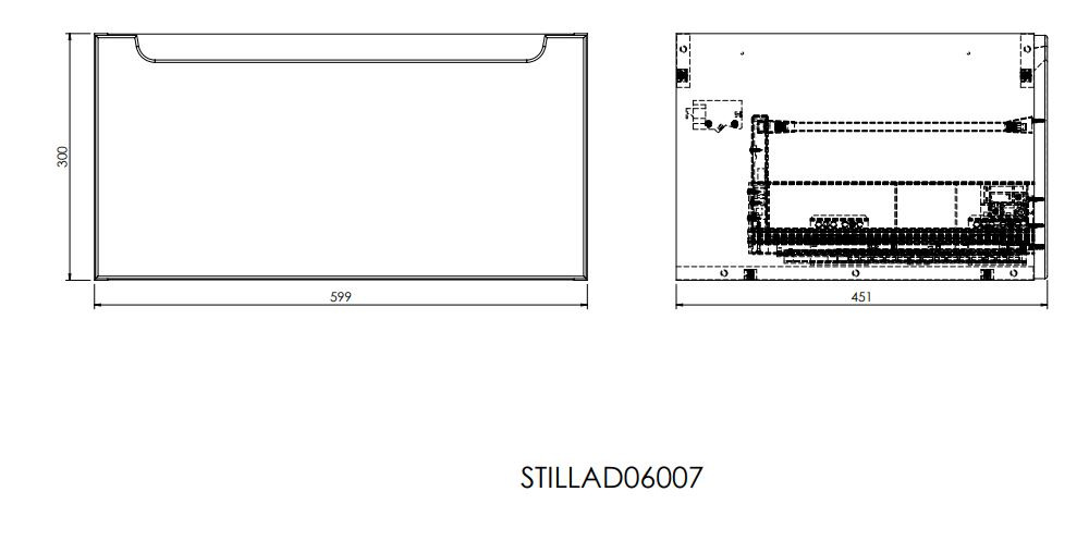 Deux meubles de salle de bain suspendus Stilla avec un tiroir de dimensions totales 120x30x45 cm avec un élégant double lavabo Modena M2N12046. L'armoire fait partie de la collection modulaire STILLA et peut être combinée avec des armoires supplémentaires, des boîtes à étagères et des plaques de recouvrement de votre choix. Cette solution vous permet d'obtenir plus d'espace de rangement pour tous les accessoires de salle de bain.