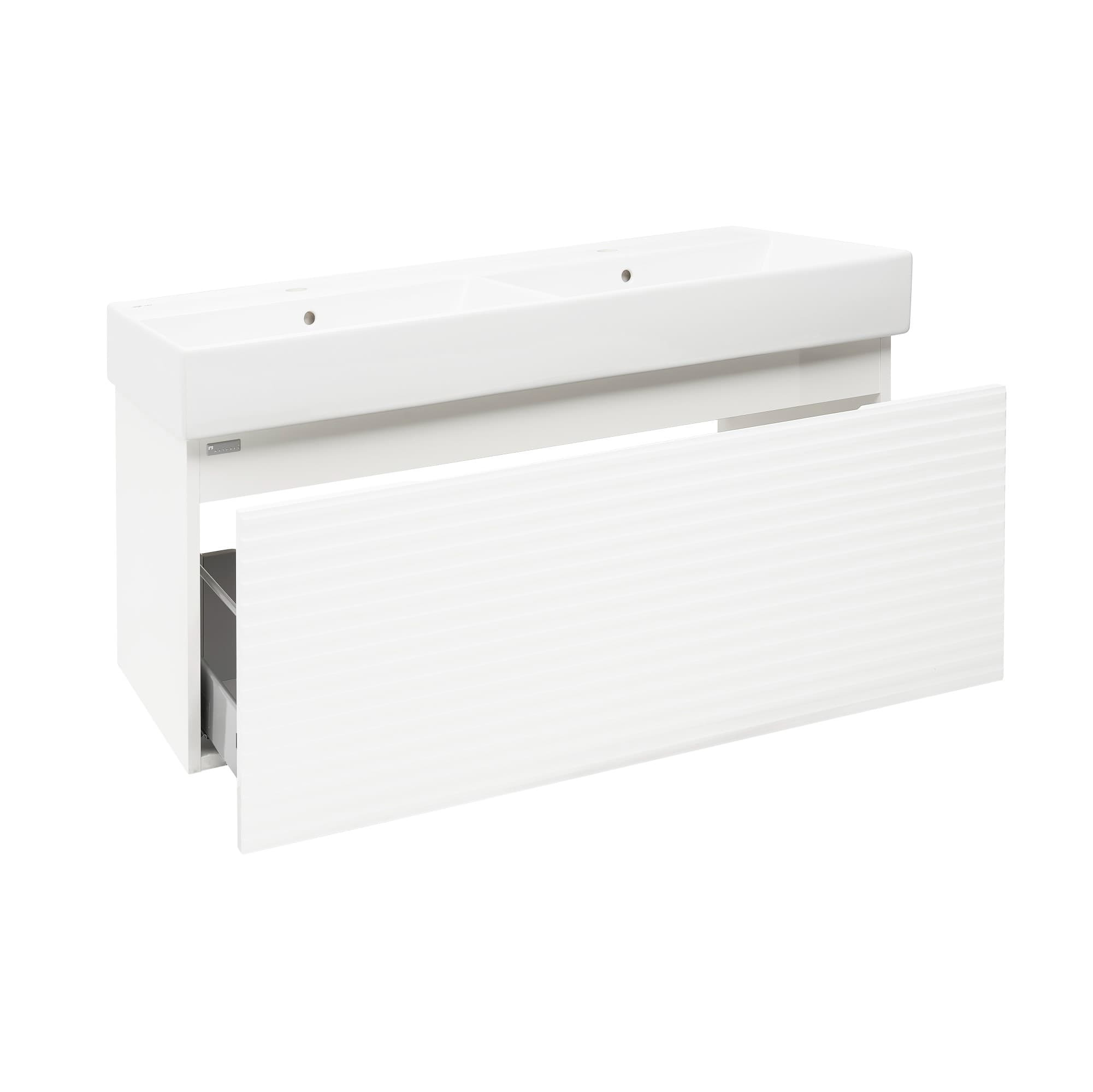 Naturel Meuble et lavabo salle de bain strié Naturel Savona 118x43x44,8 cm blanc brillant (SAVONA120BIU2)