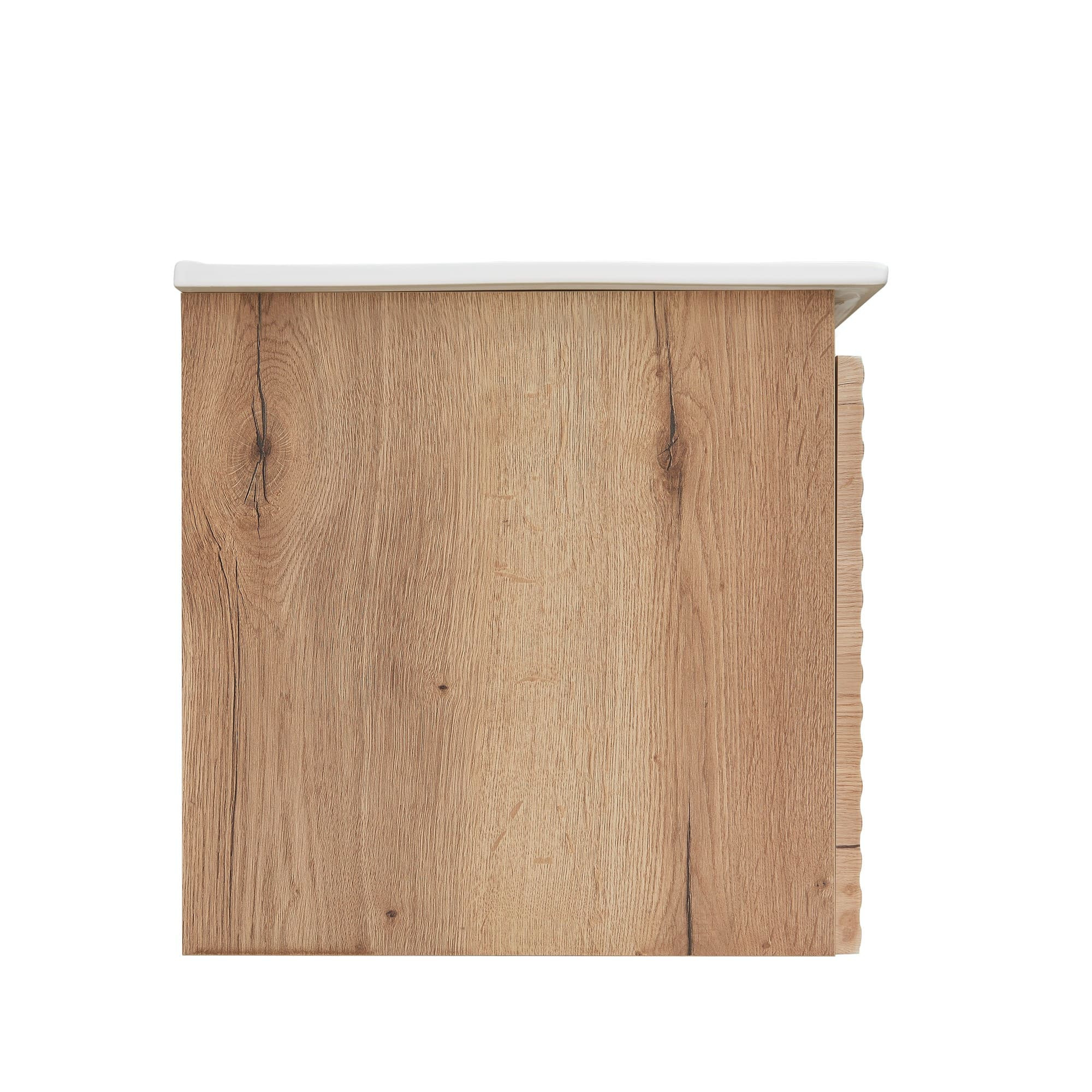 Ce meuble de salle de bain avec lavabo en céramique appartient à la série Naturel Savona. Cette série se distingue par son fraisage, qui confère à l'apparence générale du meuble un caractère intemporel tout en la rendant moderne et élégante. Cet élément garantit également que le meuble de salle de bain a un aspect unique et incomparable. Le meuble comprend un lavabo en céramique qui s'agence parfaitement avec l'apparence générale. L'armoire de salle de bain au décor chêne halifax mat offre suffisamment d'espace de rangement pour vos accessoires de salle de bain.