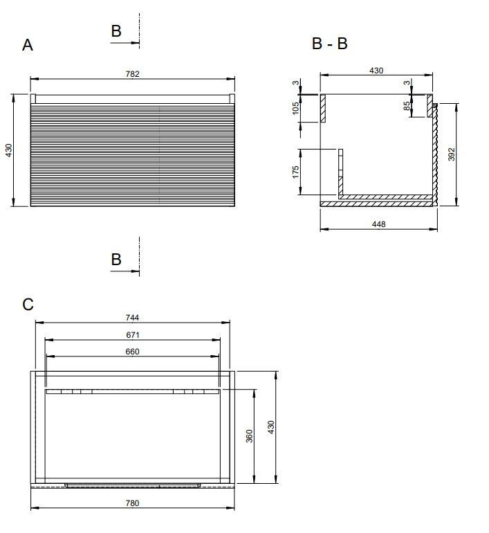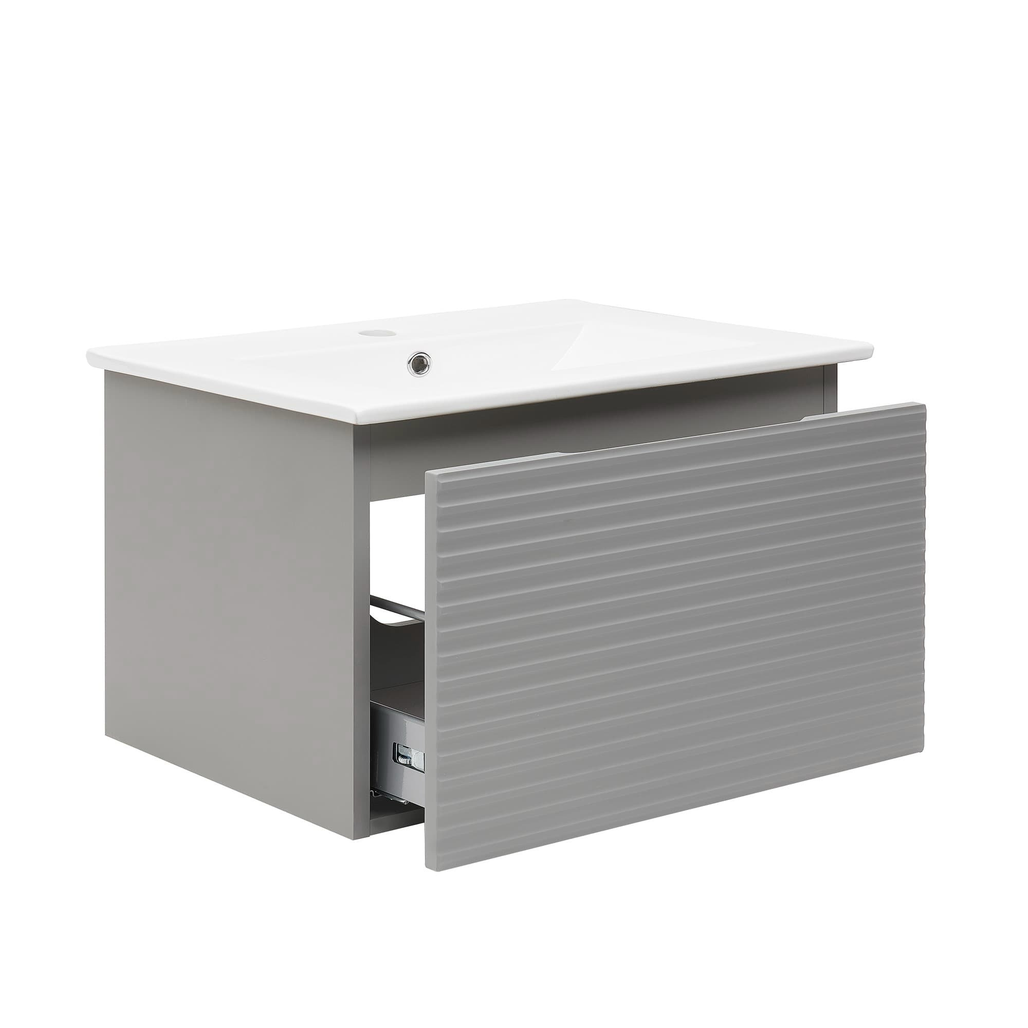 Sa façade striée ajoute du relief et du style, offrant un look chic et moderne à votre salle de bain.