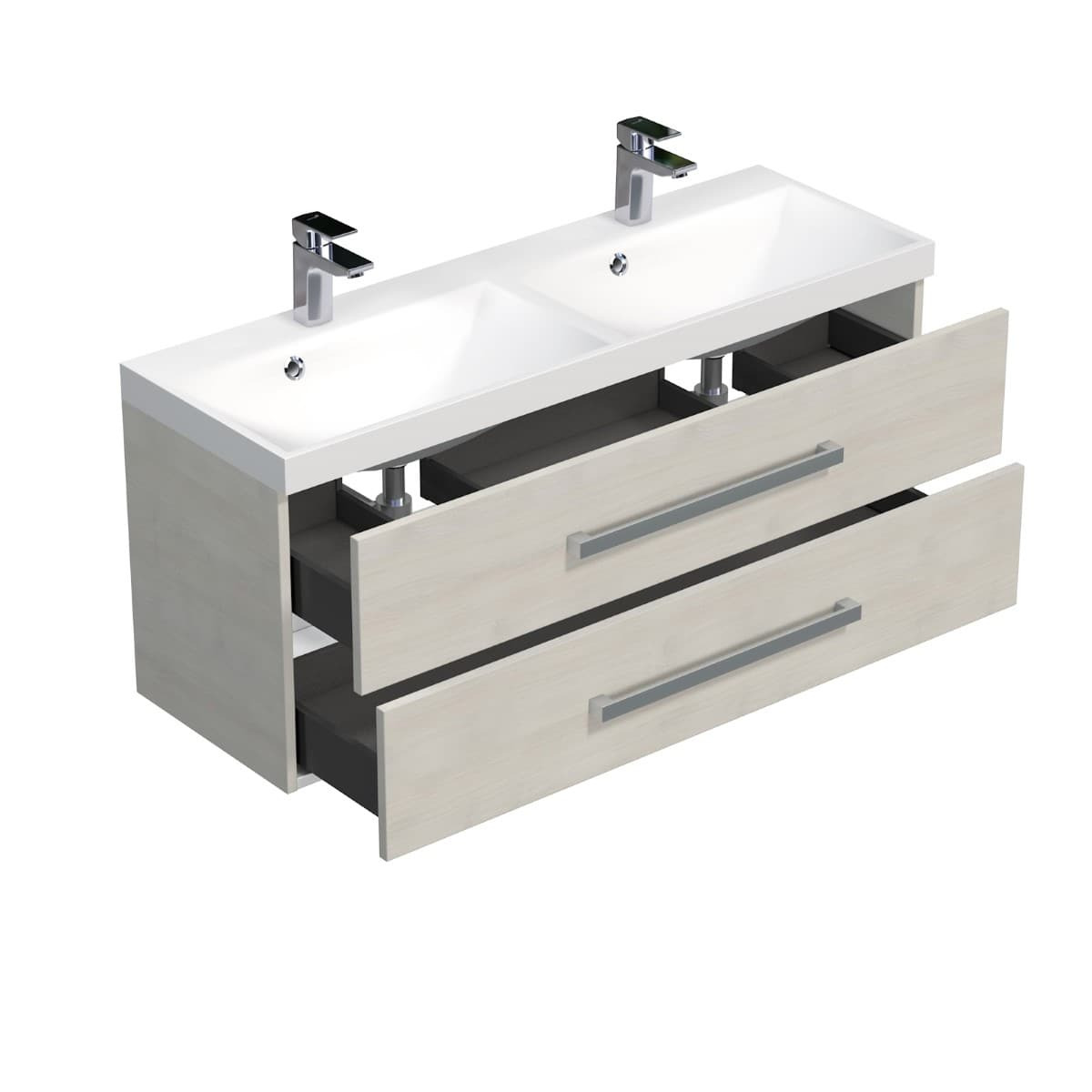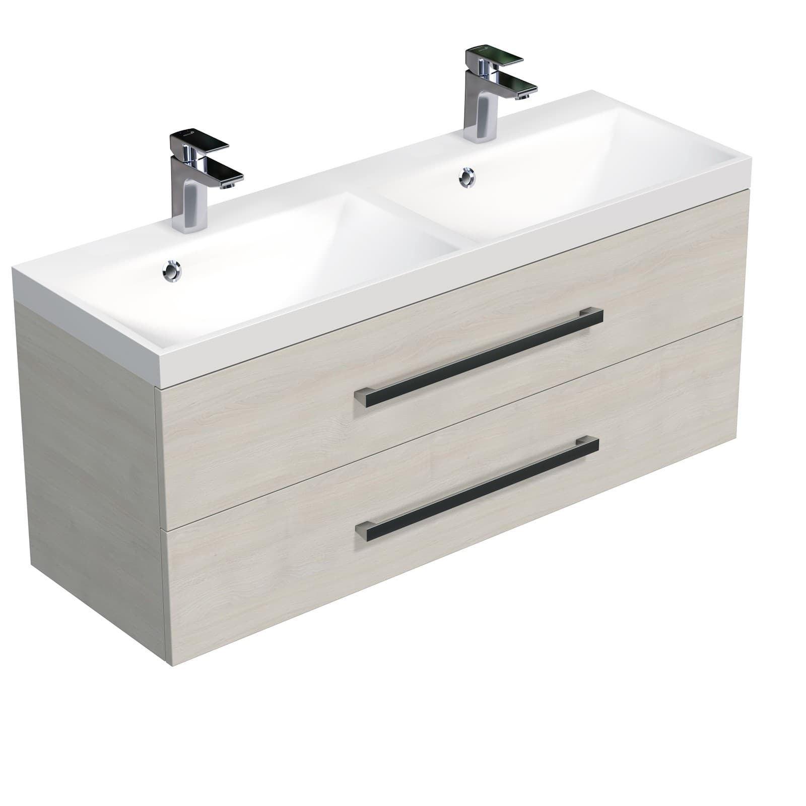 - Meuble de salle de bain suspendu avec double vasque en marbre coulé 120x53x40 cm chêne Chamonix, emballé séparément.