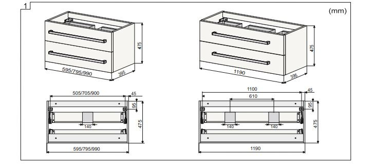 - Type d'ouverture:2 tiroirs
