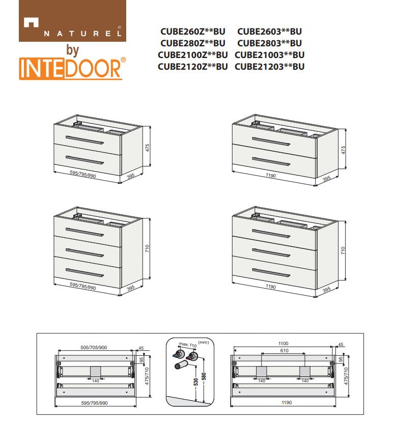 - Armoire de petite profondeur, idéale pour les petites salles de bains. Les tiroirs ont une extension totale avec butée.