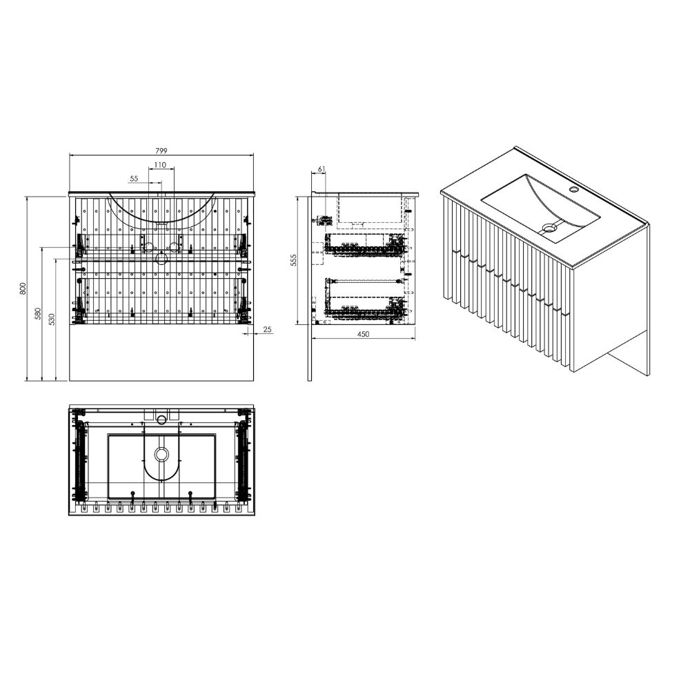 Caractéristiques du meuble de salle de bain avec lavabo SAT Delano 80x46 cm chêne mat (DELANO80ZDUM):
