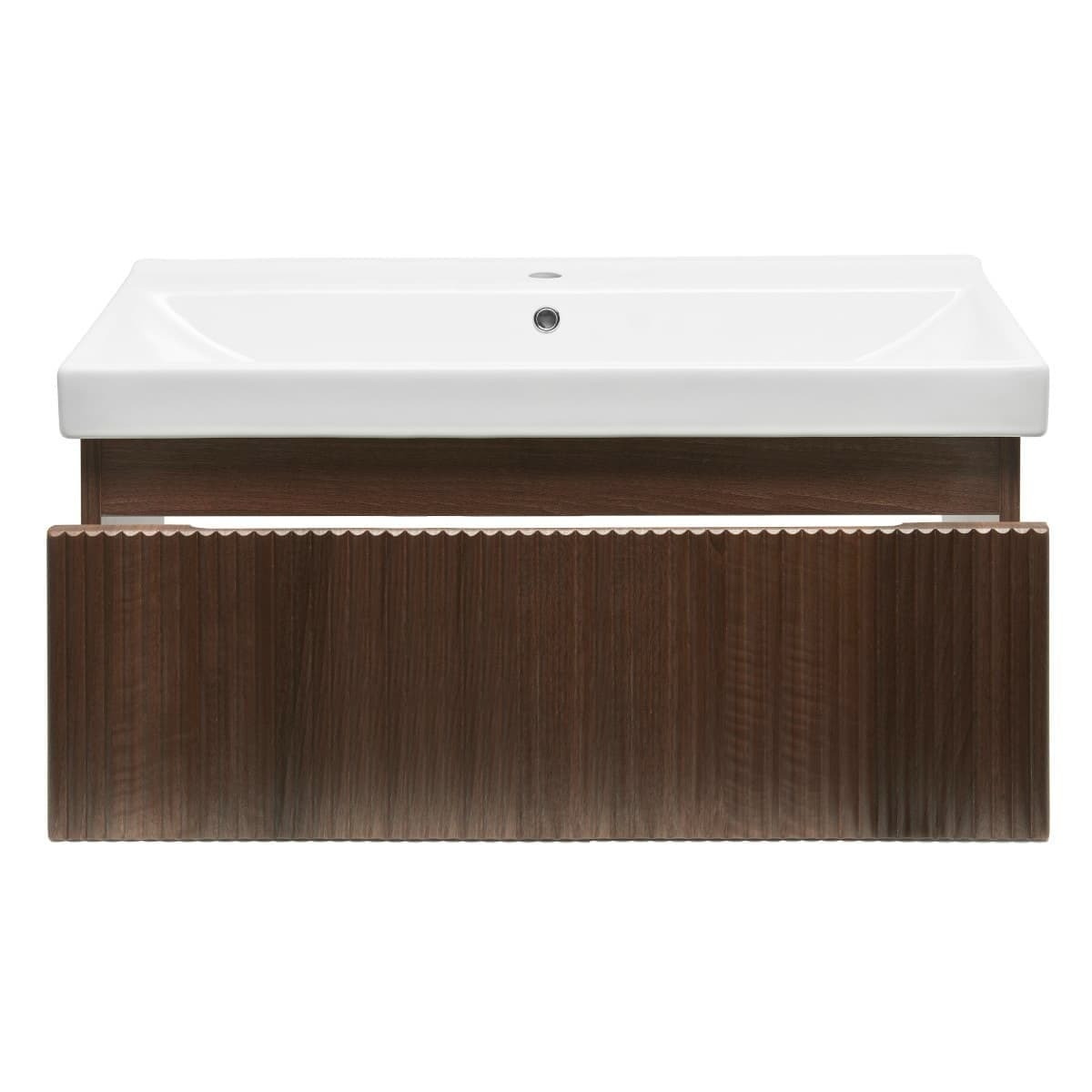 Le meuble de salle de bain SAT Evolution est doté de fraisages verticaux luxueux qui apportent un élément d'élégance unique à la salle de bain.