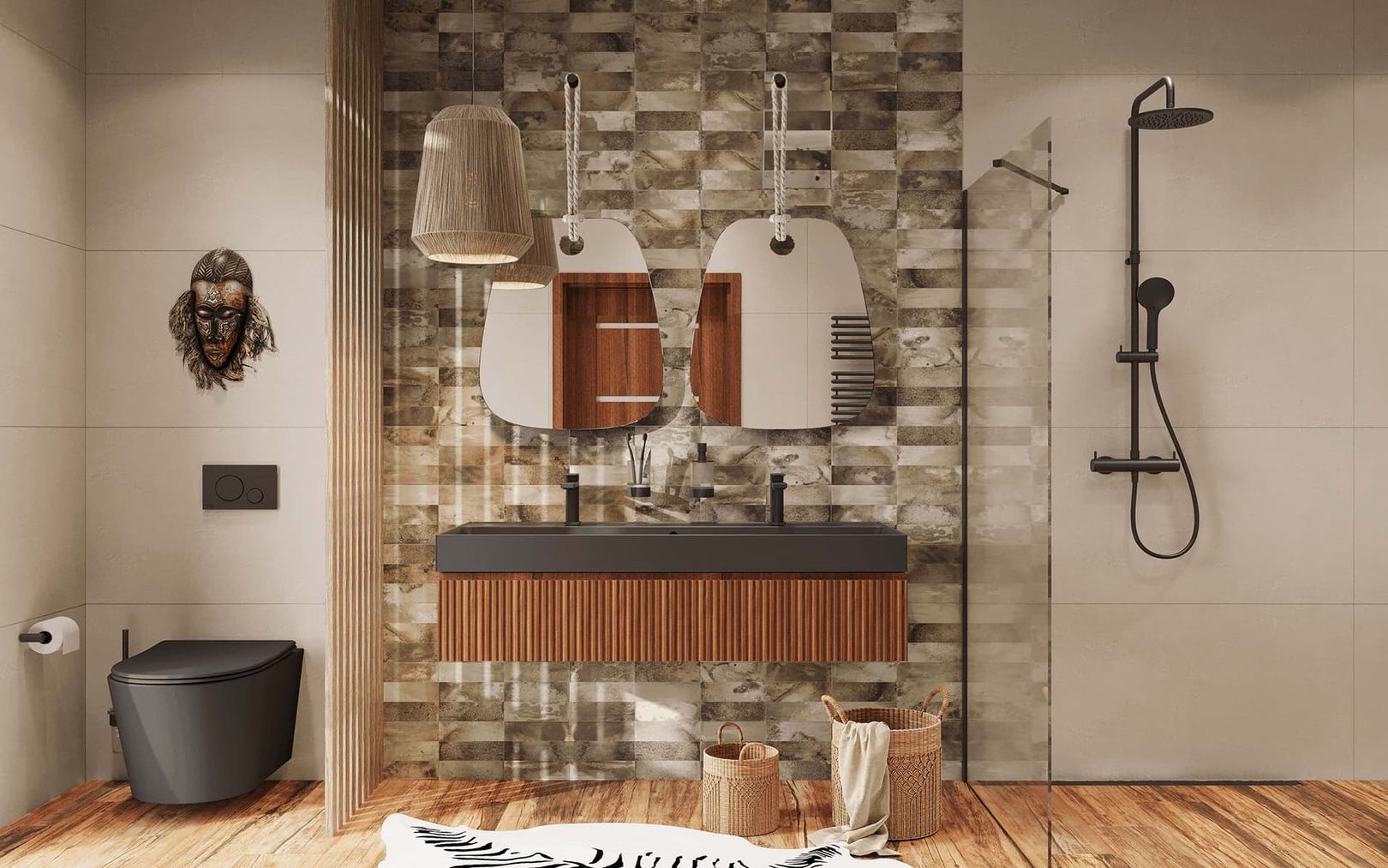 Le meuble est conçu dans un souci de praticité et d'esthétique dans la salle de bain.