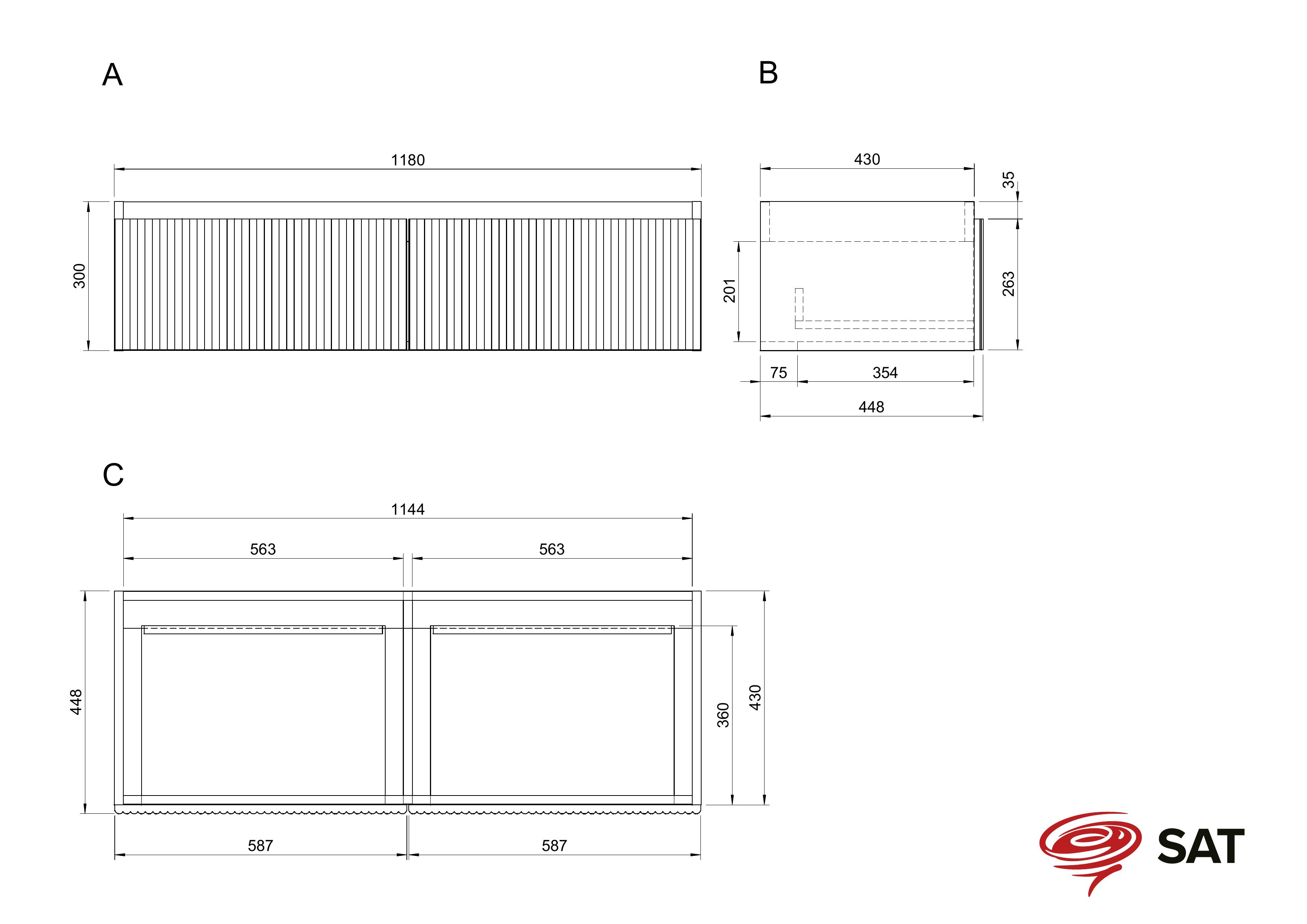 Le meuble de salle de bain SAT Evolution est doté de fraisages verticaux luxueux qui apportent un élément d'élégance unique à la salle de bain.