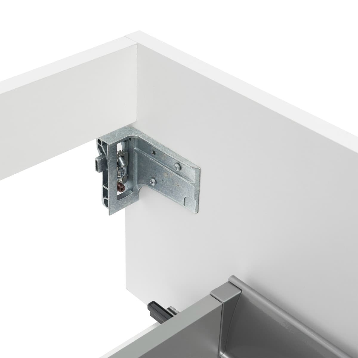 Le meuble est conçu dans un souci de praticité et d'esthétique dans la salle de bain. Le tiroir peut être ouvert en haut ou en bas de la façade du tiroir et offre ainsi un accès pratique à l'espace de rangement.