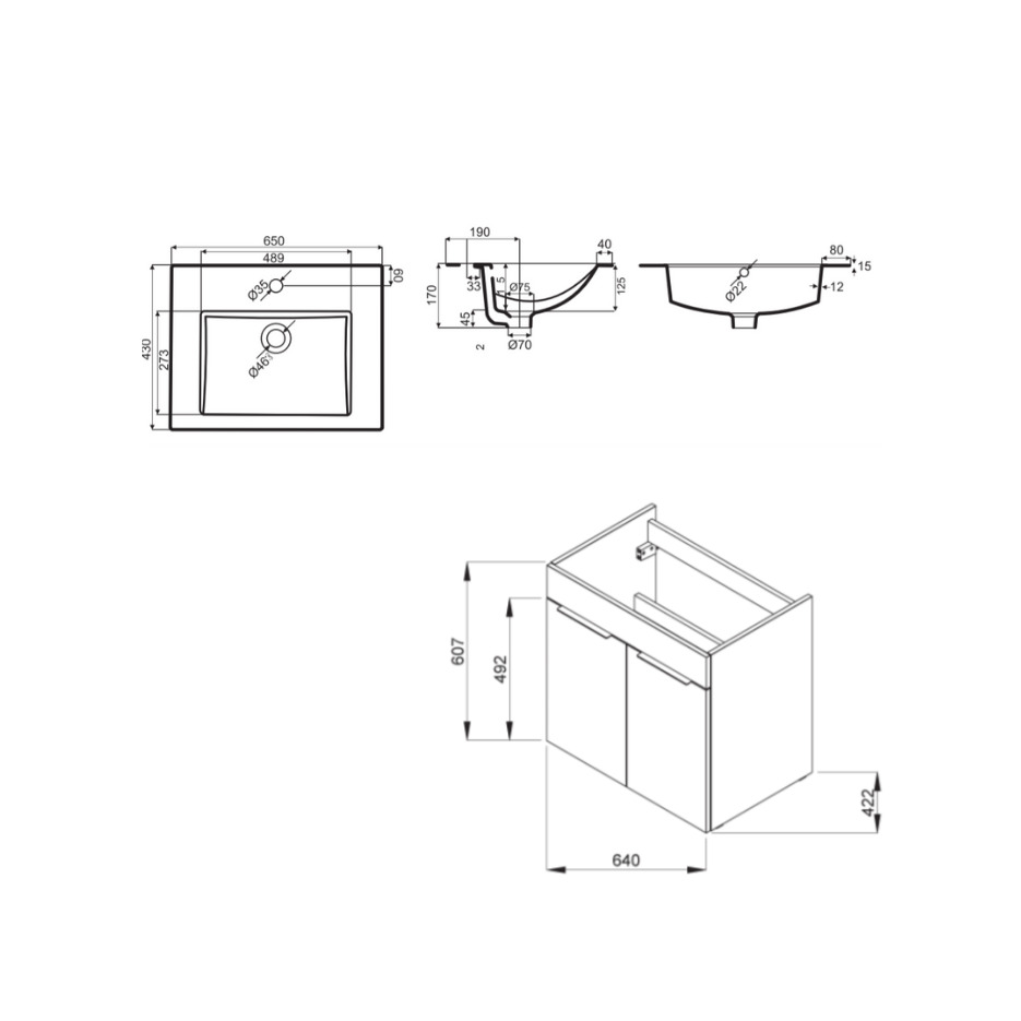 Caractéristiques du Meuble de salle de bain blanc 2 tiroirs 64x42.2x62.2cm + Lavabo en céramique blanche et trop plein, Jika Cube (H4536021763001) :