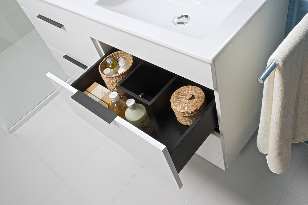 Laissez-vous séduire par le Meuble de salle de bain blanc 2 tiroirs 64x42.2x62.2cm + Lavabo en céramique blanche et trop plein, Jika Cube (H4536021763001).