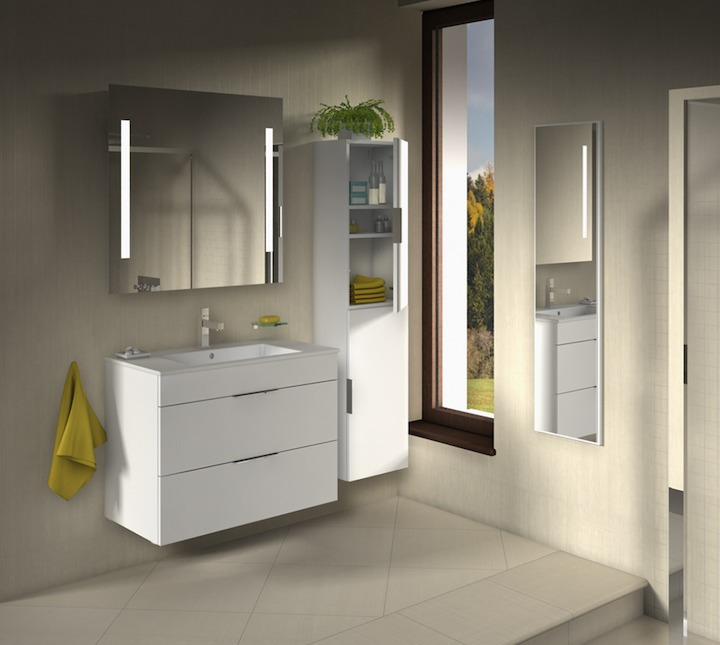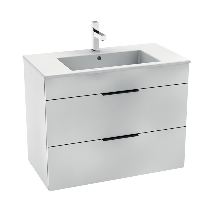Laissez-vous séduire par le Meuble de salle de bain blanc 2 tiroirs 79x42.2x62.2cm + Lavabo en céramique blanche et trop plein, Jika Cube (H4537621763001).