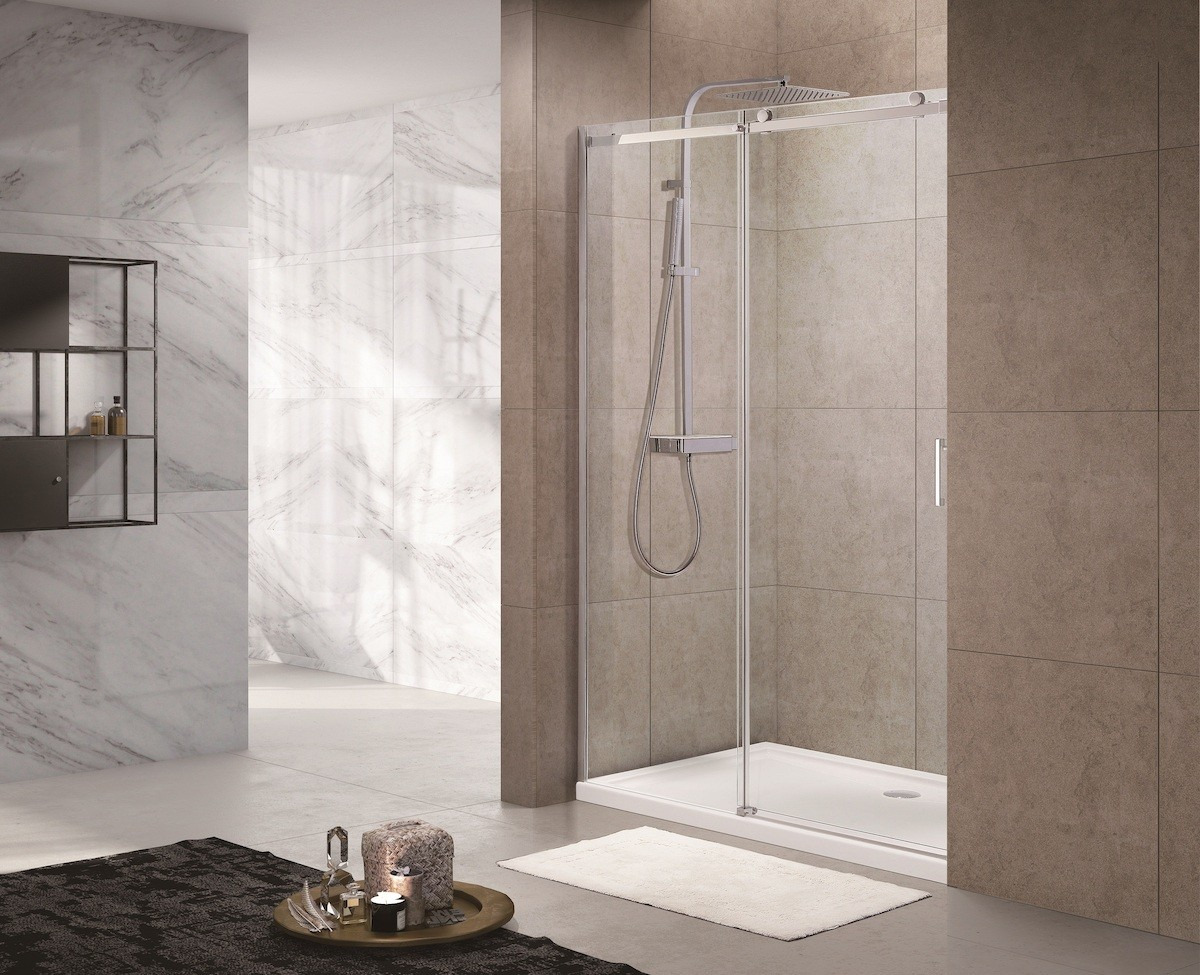- Swiss Aqua Technologies T-Linea Porte coulissante de douche verre trempé avec accessoires de montage 120x200cm, Chrome (SIKOTLDNEW120L)
