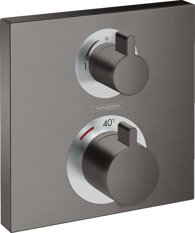 Hansgrohe Set de finition pour mitigeur thermostatique encastré avec robinet d'arrêt et inverseur, noir chromé brossé (15714340)