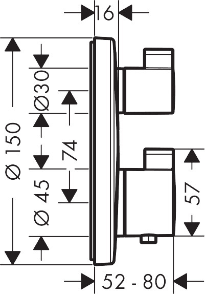 Caractéristiques du Set de finition pour mitigeur thermostatique encastré avec robinet d’arrêt et inverseur, Noir Chromé brossé Hansgrohe Ecostat S (15758340) :