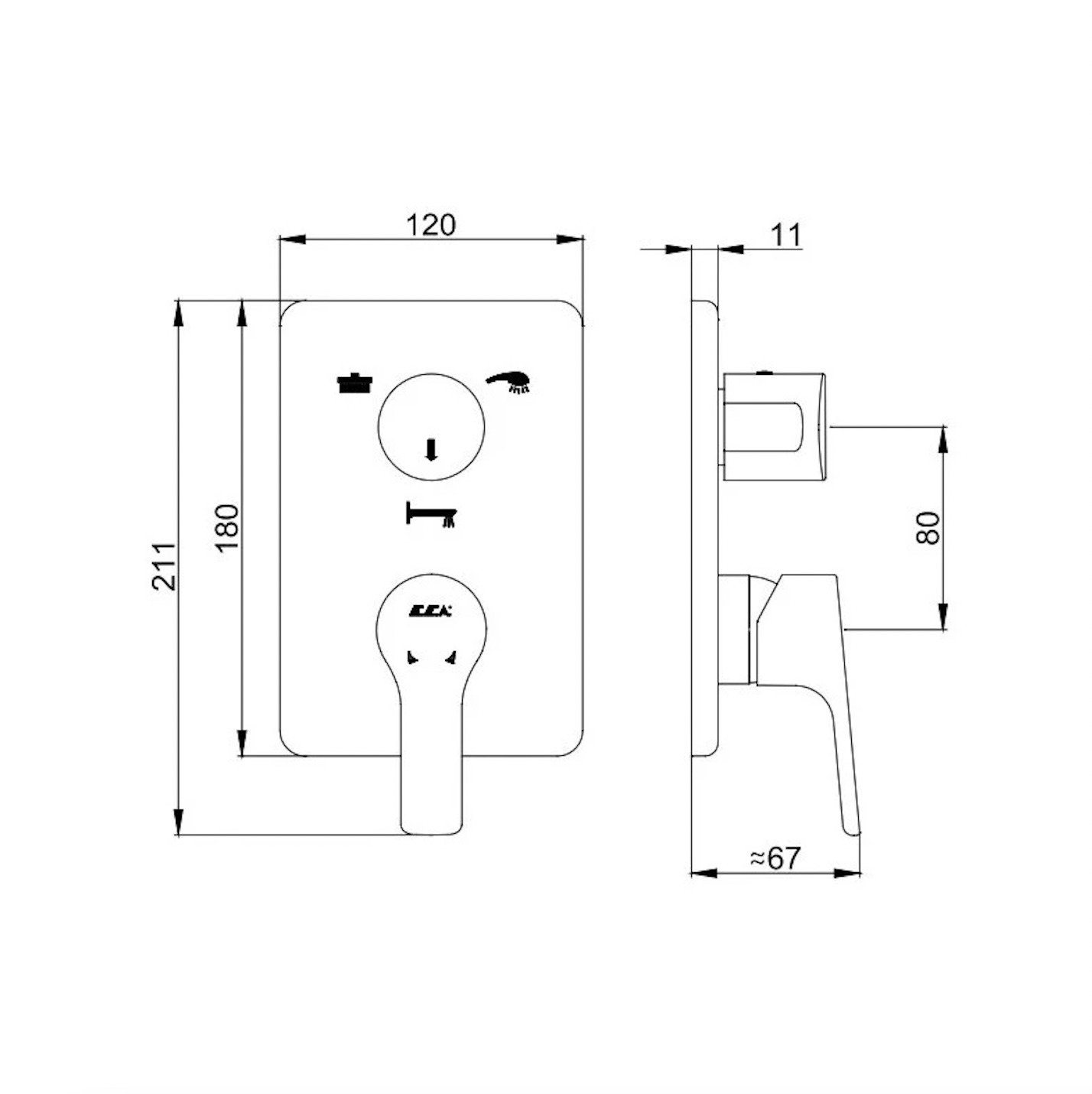 E.C.A Luna Mitigeur mécanique 2 sorties avec inverseur (102167206EX-KDE)