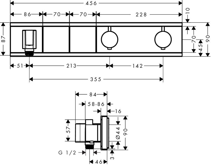 Hansgrohe RainSelect Module thermostatique RainSelect encastré avec 2 fonctions, blanc/chromé (15355400)