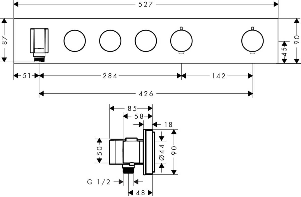 Axor Module thermostatique Select encastré 530 x 90 mm avec 3 fonctions (18356000)