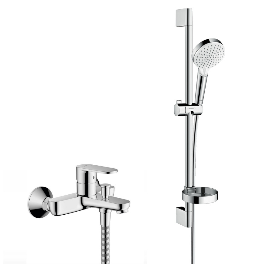 Hansgrohe Crometta Set mitigeur bain/douche + Barre 65cm + Douchette 2 jets + Flexible, Chrome (71440000-Crometta2)