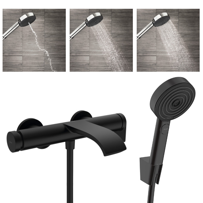 - Hansgrohe Pulsify Select Ensemble support mural et douchette 105 3 jets Relaxation avec flexible 160 cm, Noir mat (24303670)