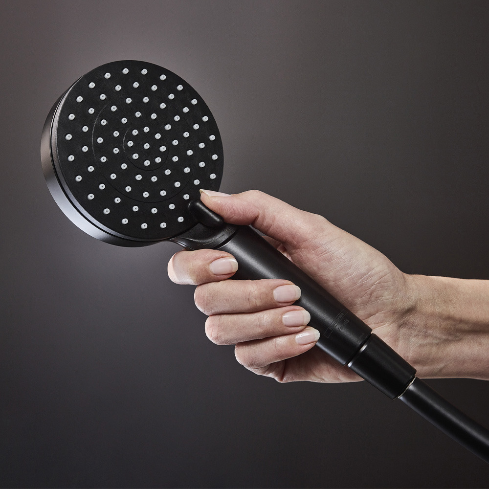 - Set de douche avec douchette à main 2 jets + Barre Unica 65 cm, Noir mat, Hansgrohe Vernis Blend (26422670) :