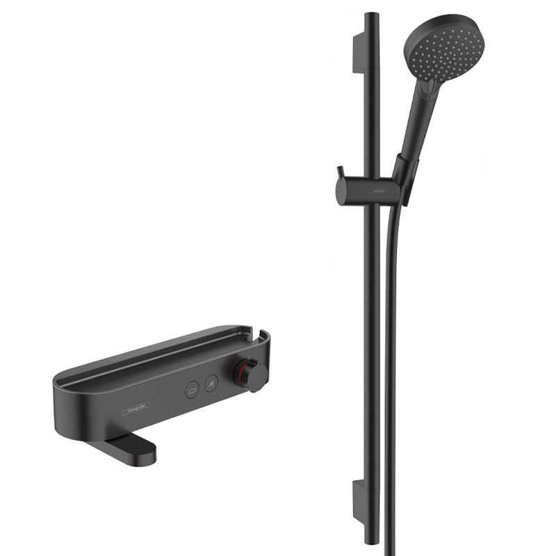 Hansgrohe ShowerTablet Select Set Mitigeur Thermostatique douche/bain + douche avec douchette à main 2 jets + Barre Unica 65 cm, Noir mat