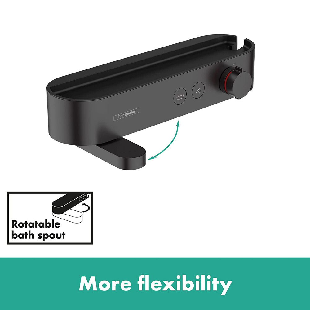- Mitigeur thermostatique bain/douche 400 avec tablette et bec déverseur rotatif, Noir mat (24340670)