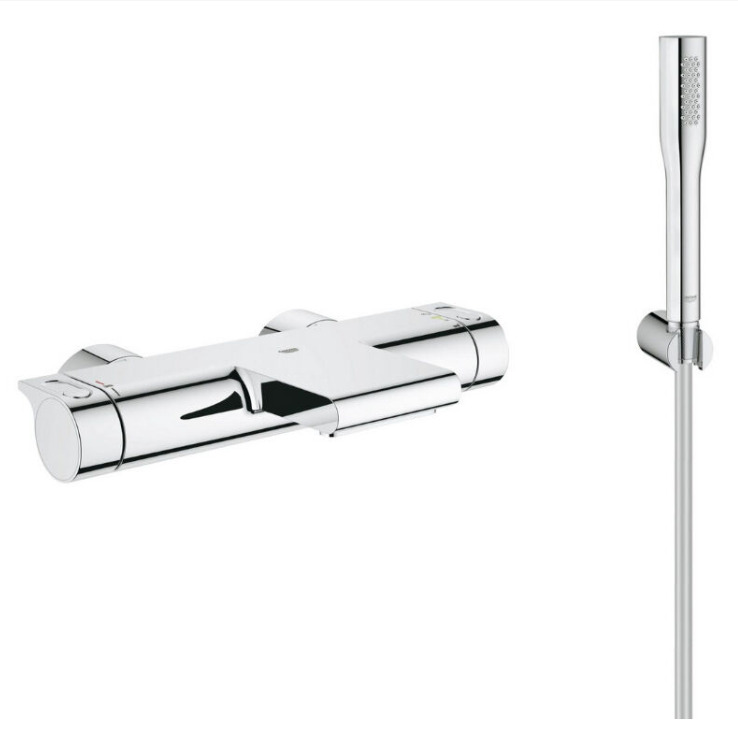 Caractéristiques du Set mitigeur thermostatique bain/douche + Douchette 1 jet + Flexible et support mural, Chrome, Grohe Grohtherm 2000 (34174001-Euphoria-AMZ) :