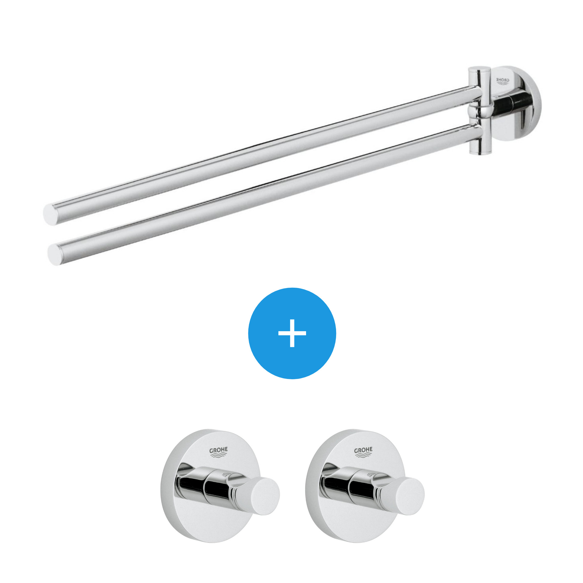 Grohe Essentials Lot de 2 patères murales fixation invisible + Double barre porte-serviettes métal (40364001 + 40371001)