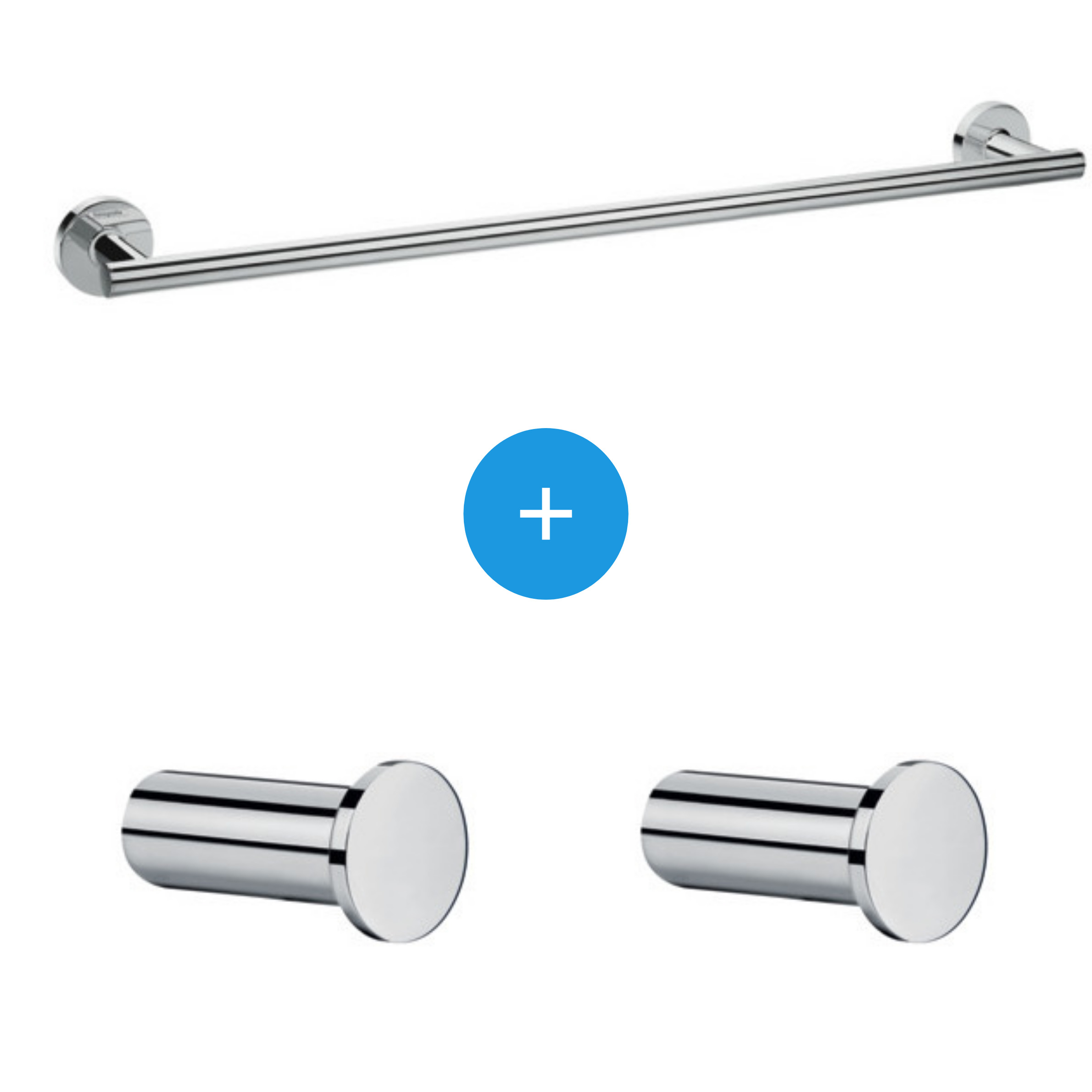 Le pack Porte-serviette mural + Deux crochets porte-serviette, Chrome Hansgrohe Logis Universal (41716000-TRIOLOGIS) est composé de :