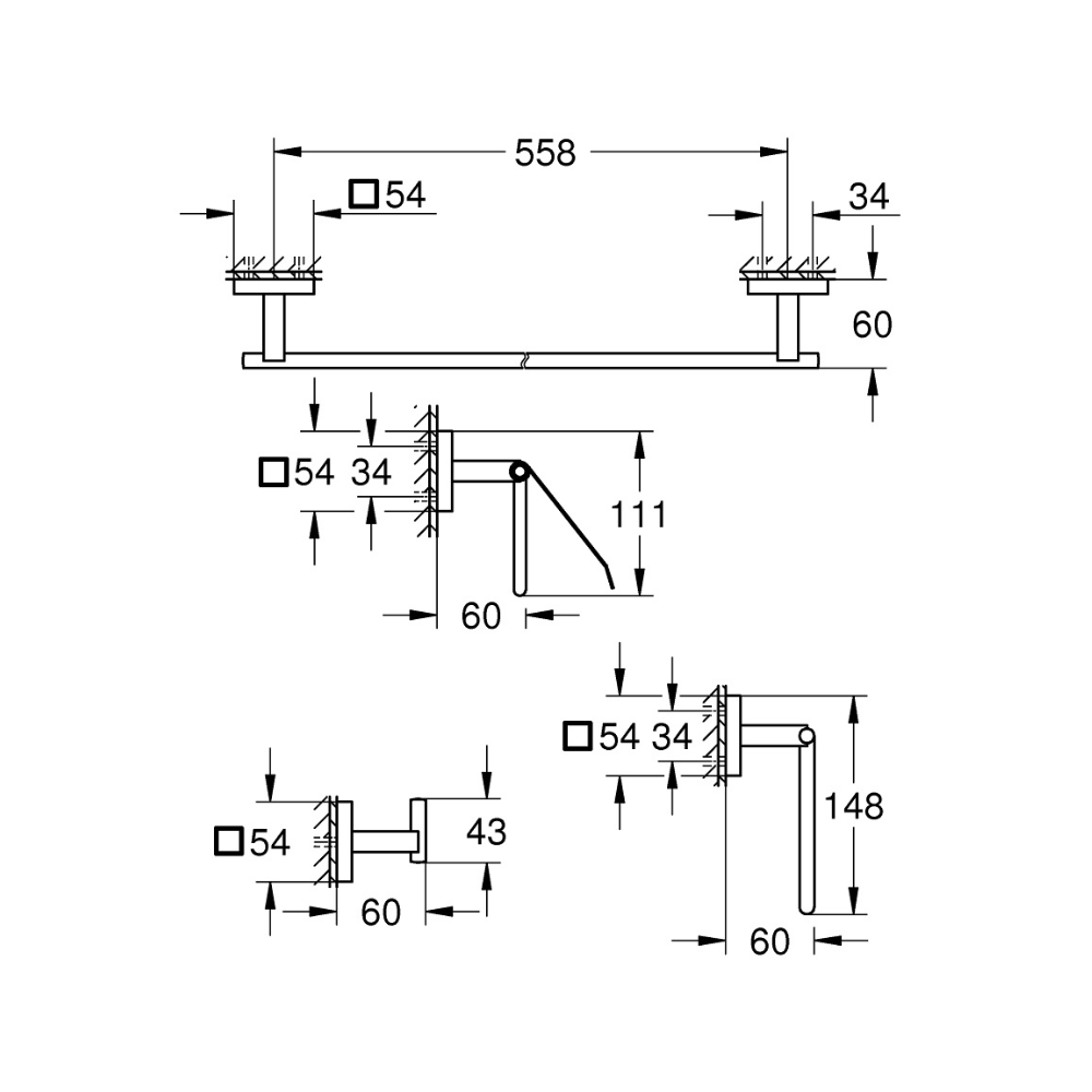 - Barre porte-serviettes, 558 mm (Référence : 41 089)