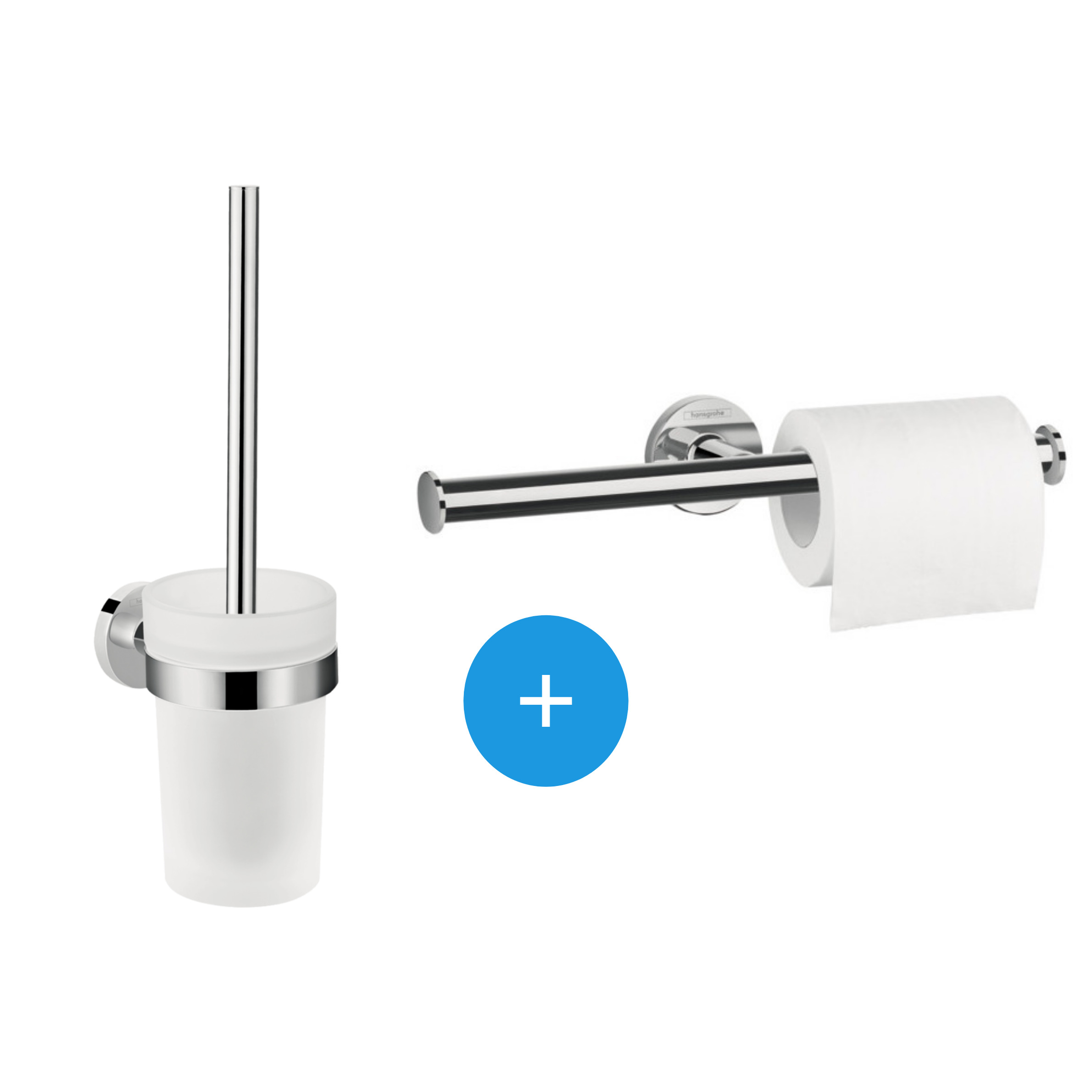 Le pack brosse WC + support de rouleau double, Chrome Hansgrohe Logis Universal (41722000-DUOLOGIS2) est composé de :