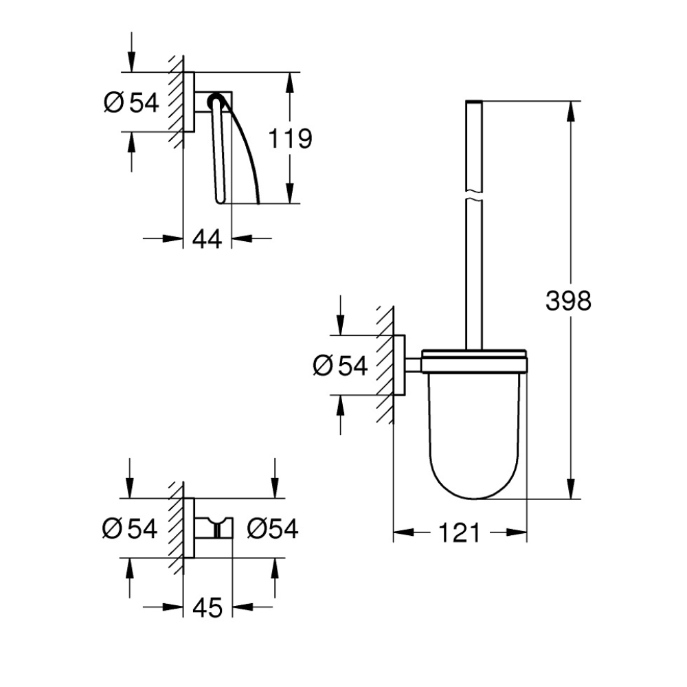 Caractéristiques du set d'accessoires WC 3 en 1 en verre avec fixations cachées, Grohe Start, chrome (41204000) :