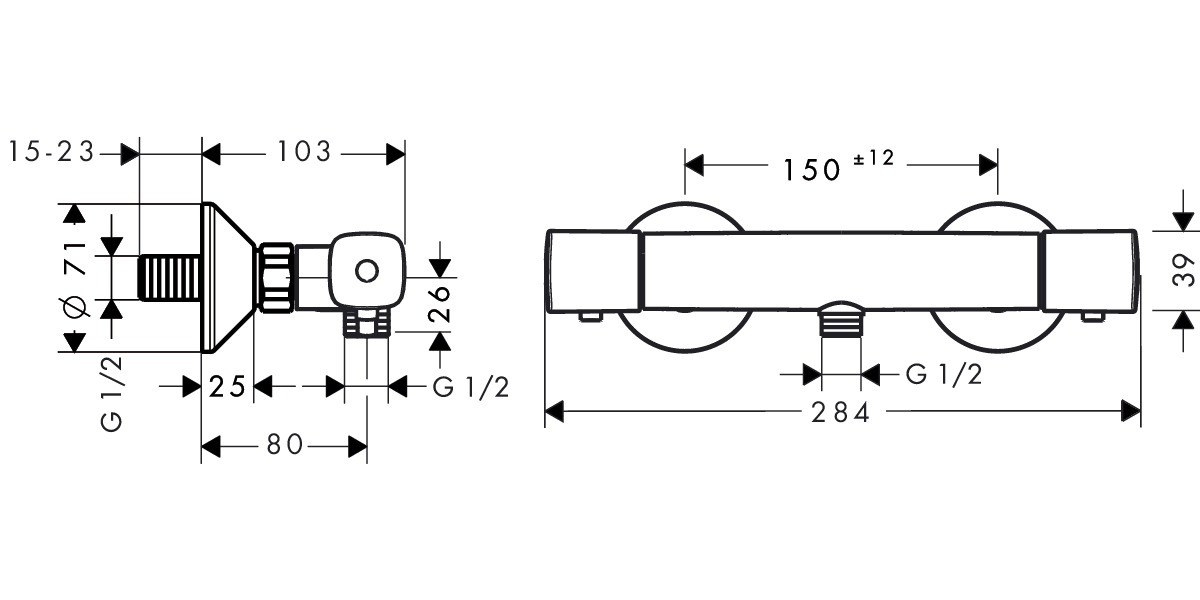 Caractéristiques du Pack Mitigeur encastré + Fixfit Square + Barre de douche + Porte-savon + Douchette à main, Chrome, Hansgrohe Logis (71605000-Crometta2) :
