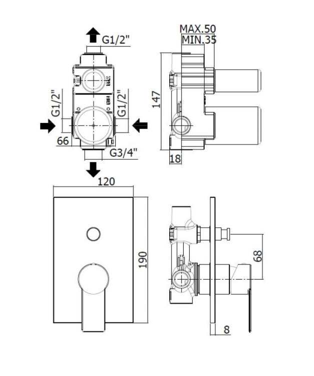 - Swiss Aqua Technologies by Paffoni B-Way Set de finition de douche avec levier, 2 sorties, + Corps encastré inclus (SATBSBW215)