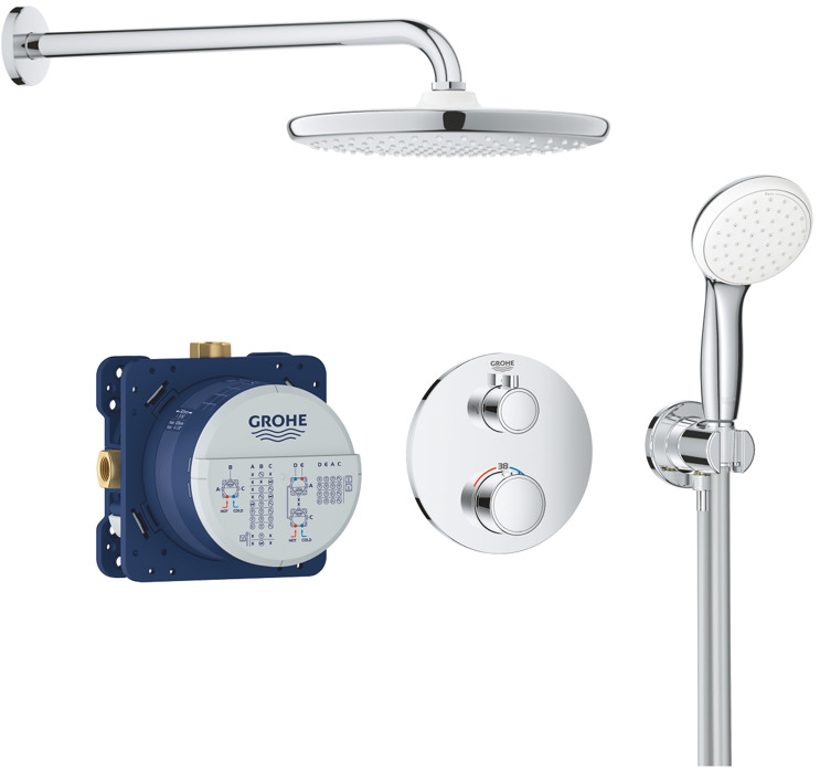 Caractéristiques du Set de douche encastré avec mitigeur thermostatique, douche de tête XXL 250 et douchette 2 jets, Chrome, Grohe Grohtherm (34727000-XXL) :