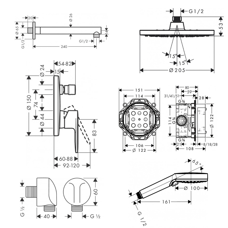 Caractéristiques du Set de douche Vernis Blend Pulsify tout en 1 avec Douche de tête 205 XXL + Douchette à main 3 jets, Noir mat :