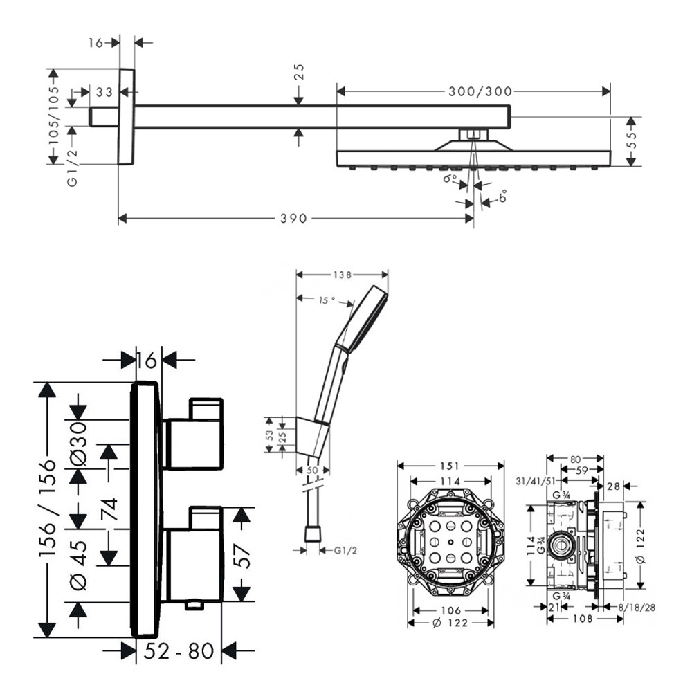 Hansgrohe Ecostat Raindance Pulsify Set de douche encastré tout en 1 avec douche de tête 300 XXL + Douchette 3 jets Performance