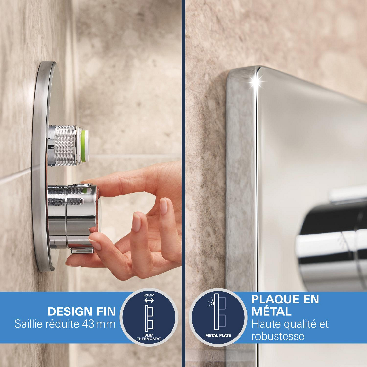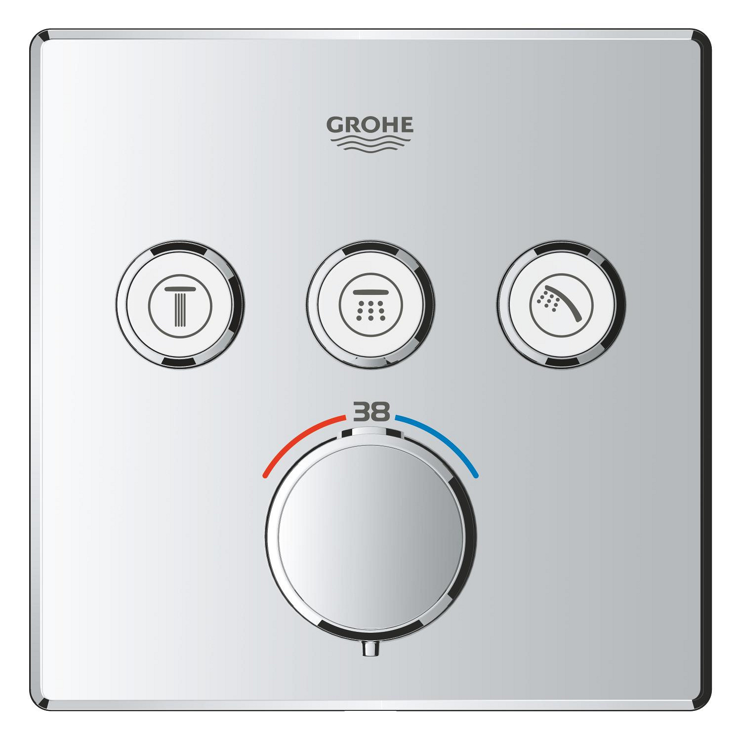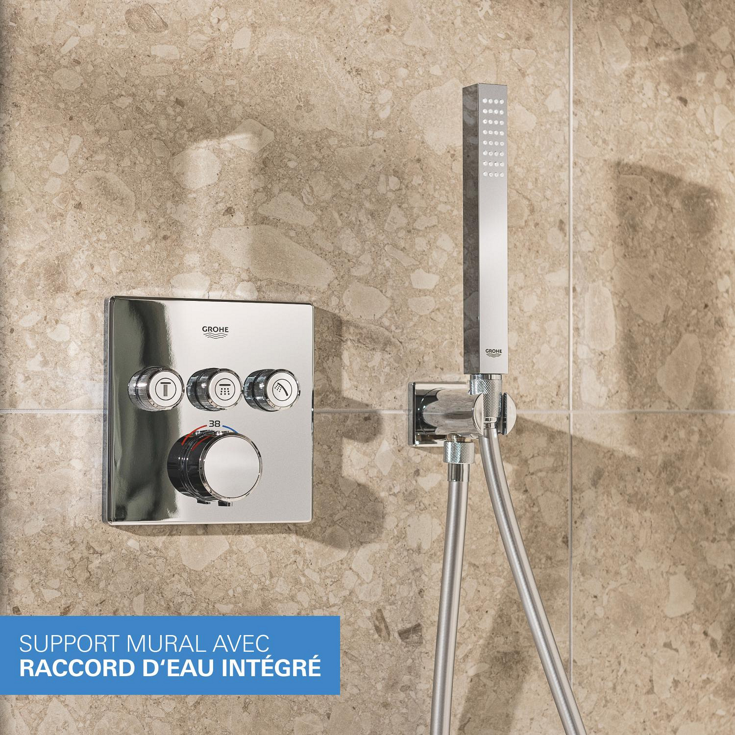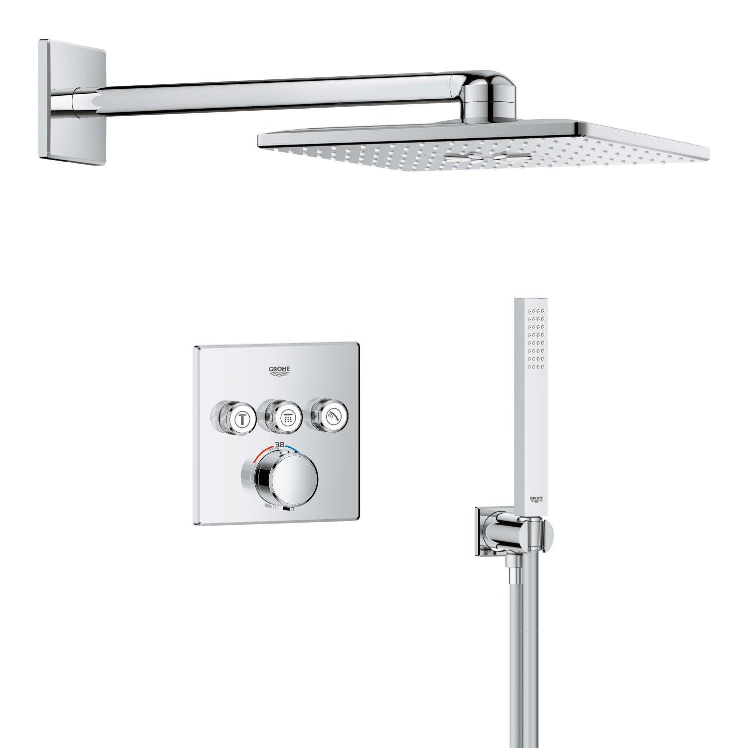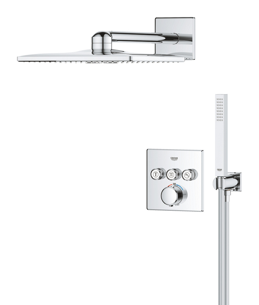 Caractéristiques du set de douche encastrée façade thermostatique + Douche de tête 2 jets + Douchette, chrome Grohe Precision SmartControl (G34875000) :