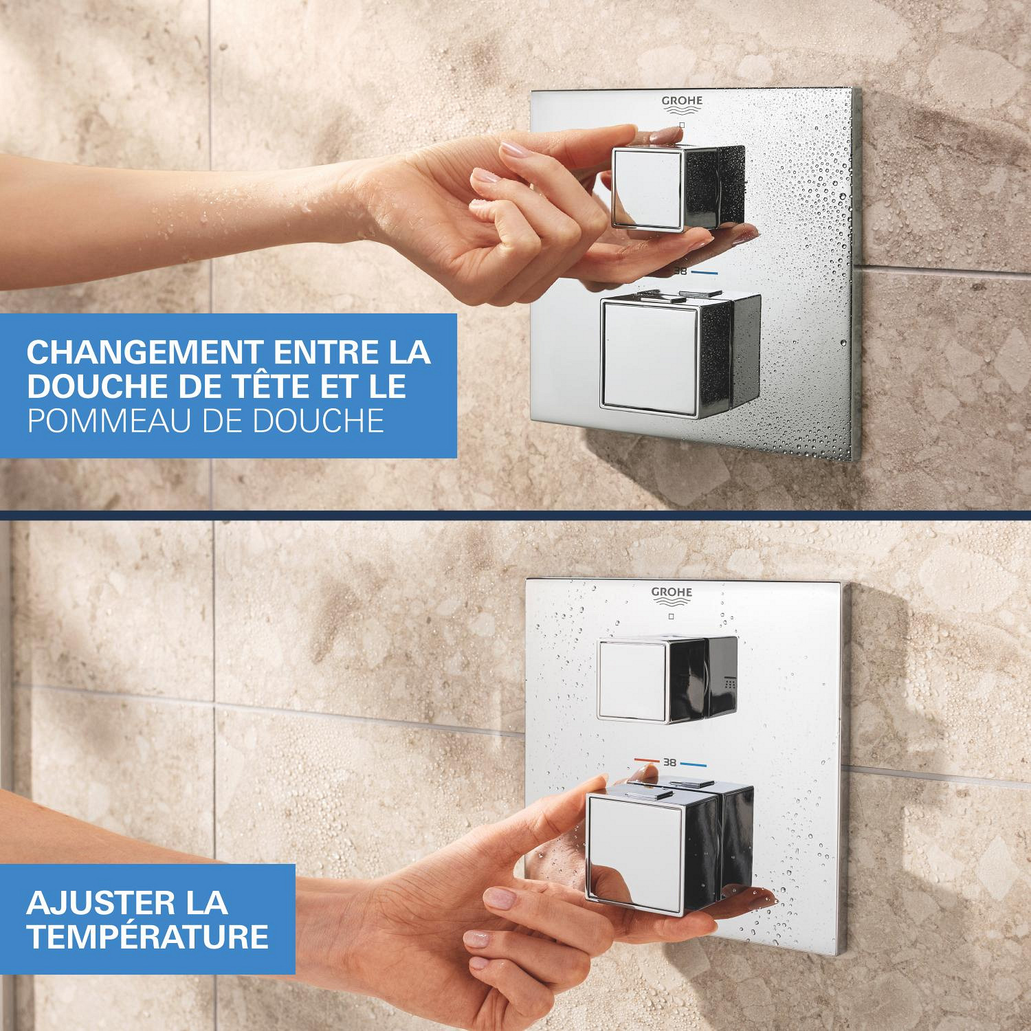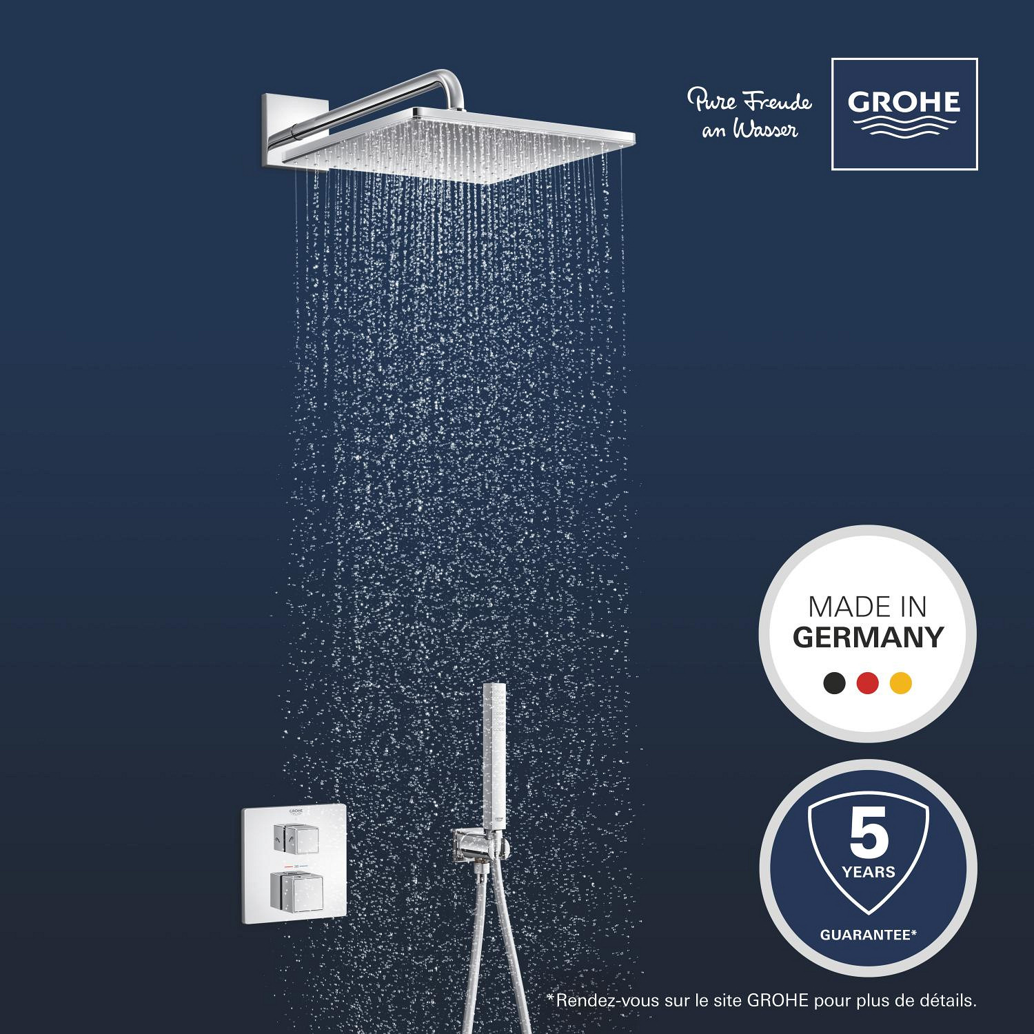 Caractéristiques du Set de douche encastrée avec mitigeur thermostatique + Douche de tête + Douchette, chrome Grohe Precision Cube (G34879000) :