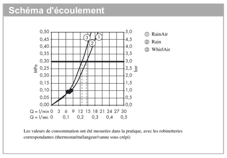 • Débit du raccordement de la douchette sous 3 bar: 17 l/min